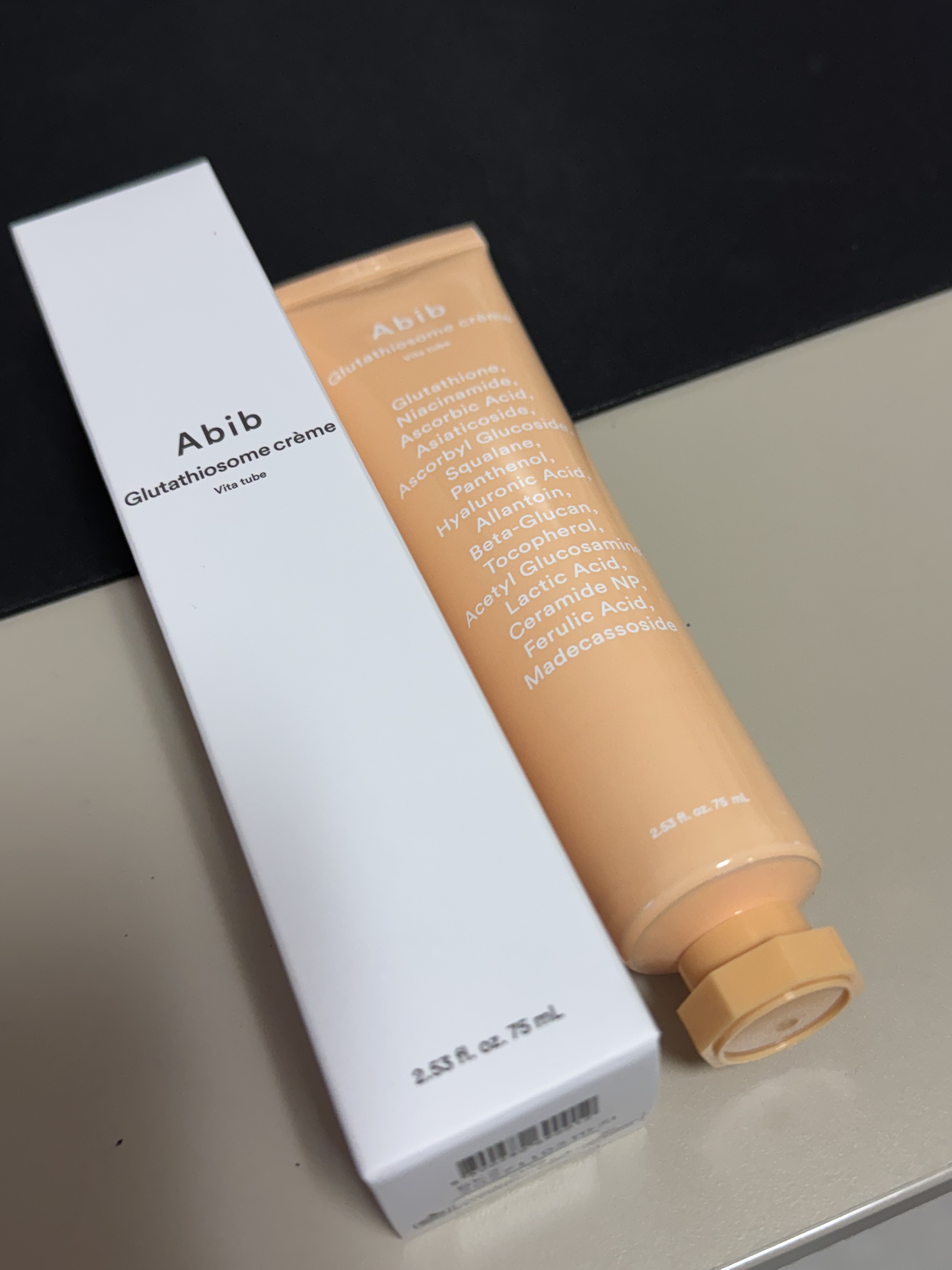 Abibの大人気シリーズ「グルタチオンソームライン」から新登場したチューブ状のクリームです!このシリーズのセラムとパッドを夏にたくさん使ったのでクリームも気になって使ってみました🧡 水分クリームよりもしっとり・リッチすぎずお肌にスッと浸透するテクスチャーなので混合肌の私は1年中無難に使えるなと思いました! くすみケアに特化したクリームで、メラニンの生成を抑えてくれるらしい!