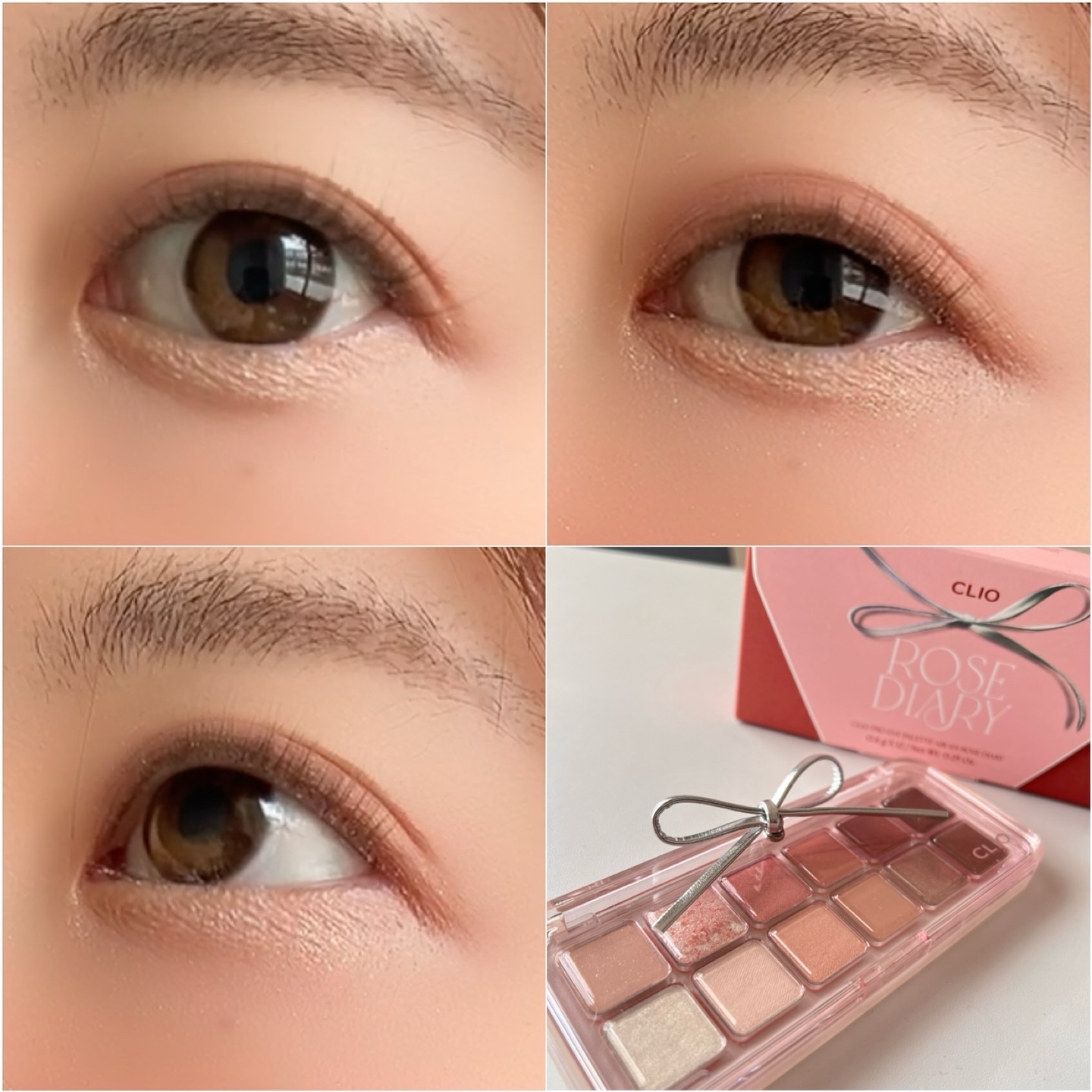 全色ラメ入りなのに使いやすい✨ 温かローズパレット💗💗 マット×パール、シマーパール、マーブルグリッターなどで全色ラメ入りなんだけどトーン的には落ち着いていて使いやすいです🤍 特に上段の右3番目のカラーがかわいい✨✨ 温かさのあるローズカラーなのでパーソナルカラー問わず使いやすいパレットだと思います🎨