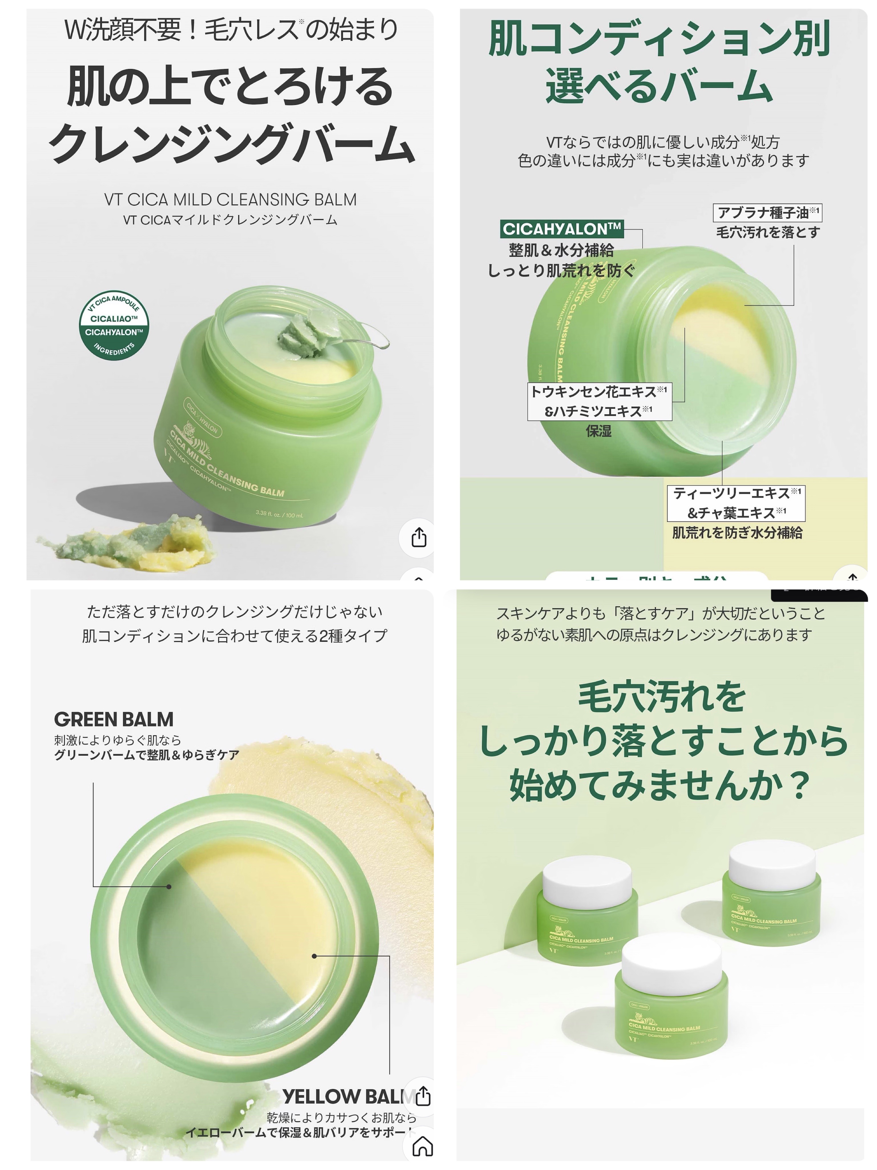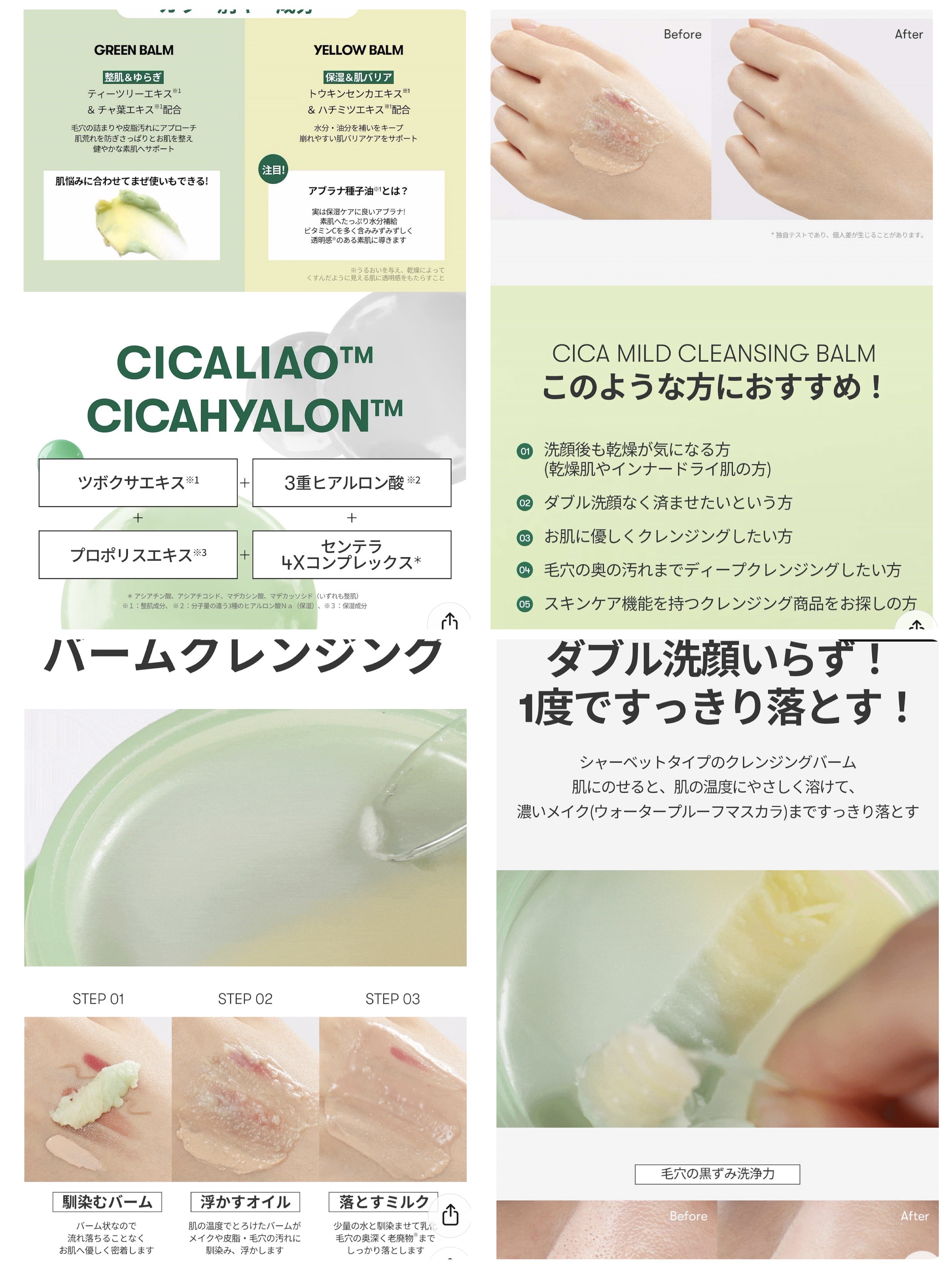 - 良いスキンケアをしっかり角質層の隅々まで浸透 させるためお肌の汚れをしっかり落としてくれる シカ マイルド クレンジングバーム