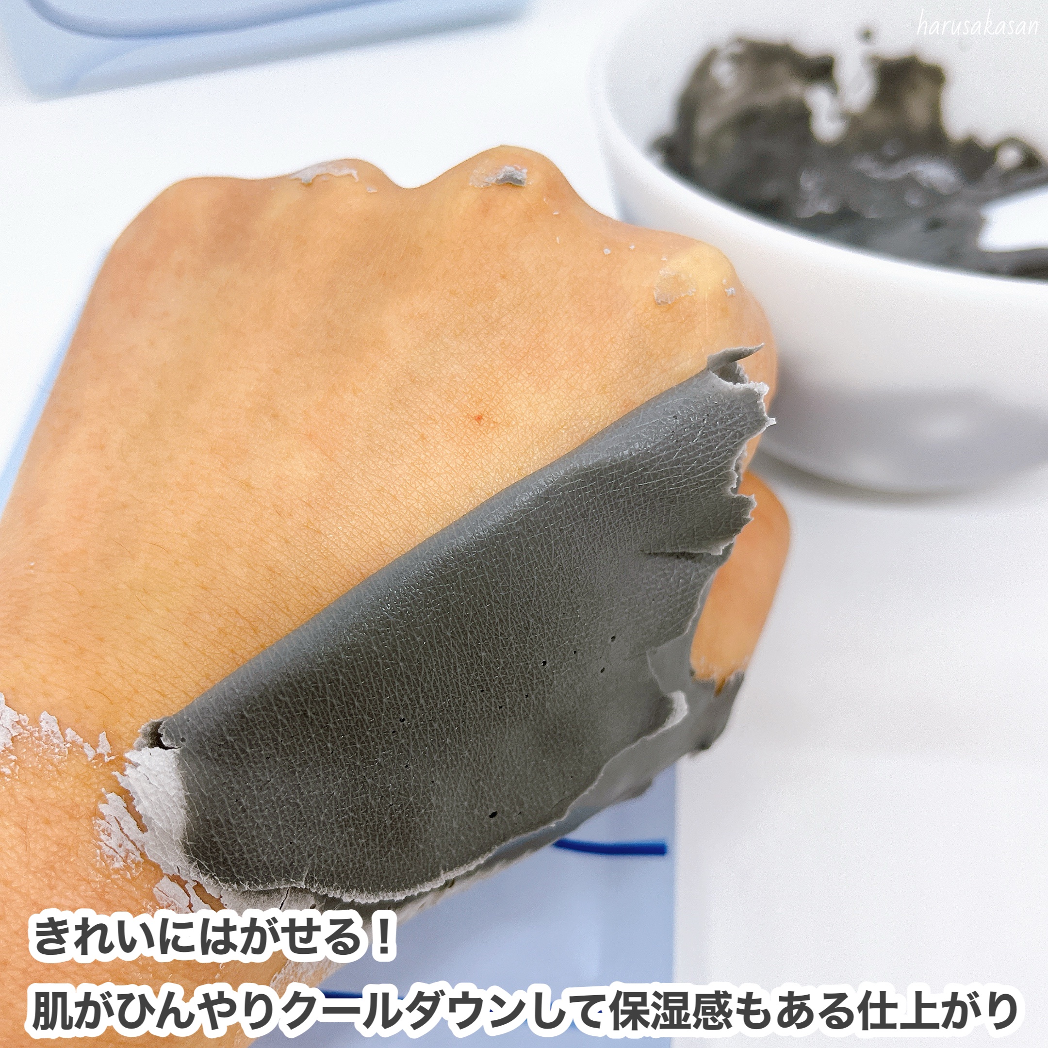 目立つ開き毛穴にすべすべ毛穴レス肌✨ 毛穴レスパック 塗布するとひんやり清涼感があります🍃 (剥がした後までひんやり感が残ります) 毛穴の開きが気になっていた小鼻や凹凸のある部分の肌がやわらかく、スッキリして気持ちいいです🩵