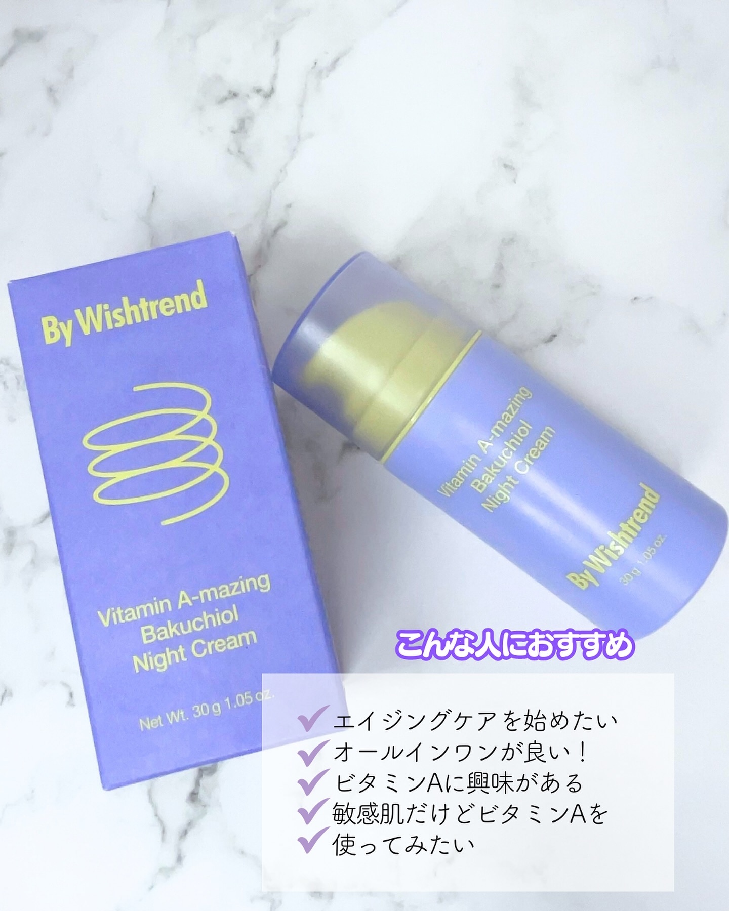 𓊆ByWishtrend/ビタミンA-mazingバクチオールナイトクリーム𓊇レチノールが合わなくて諦めてる人とかいない?これは主成分がレチナール+バクチオールで優しめのビタミンAクリーム。バクチオールはレチノールと同じ効果があるけど刺激が少...
