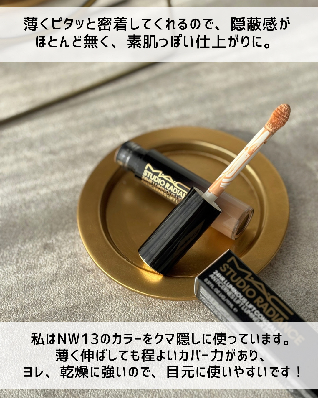 M•A•Cのコンシーラーがベリーグッド👍M•A•Cスタジオラディアンス24ルミナスコンシーラーNW134.510円税込こちらは、80%美容液成分のコンシーラーになります。ハイカバーなのに薄膜で、指つけでも綺麗に付けれるので感動して購入しました...