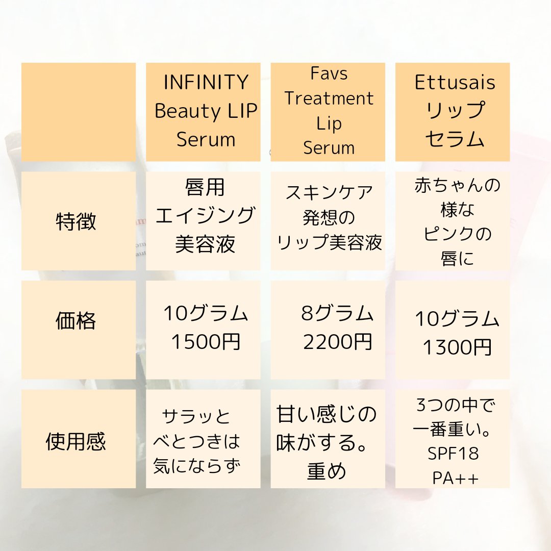 ぷりっぷりに見える 縦じわが目立たなくなる スライドして塗ると唇ごと動くからぽんぽん塗りしないといけないほど濃厚(伝われ) 個人的にめちゃくちゃ好きで4本リピしてるしストックもある香りがどストライク(甘いけどすーっとする香り) この金額でこの保湿力と使い心地、さらにSPF18 PA++で本当に財布に優しい