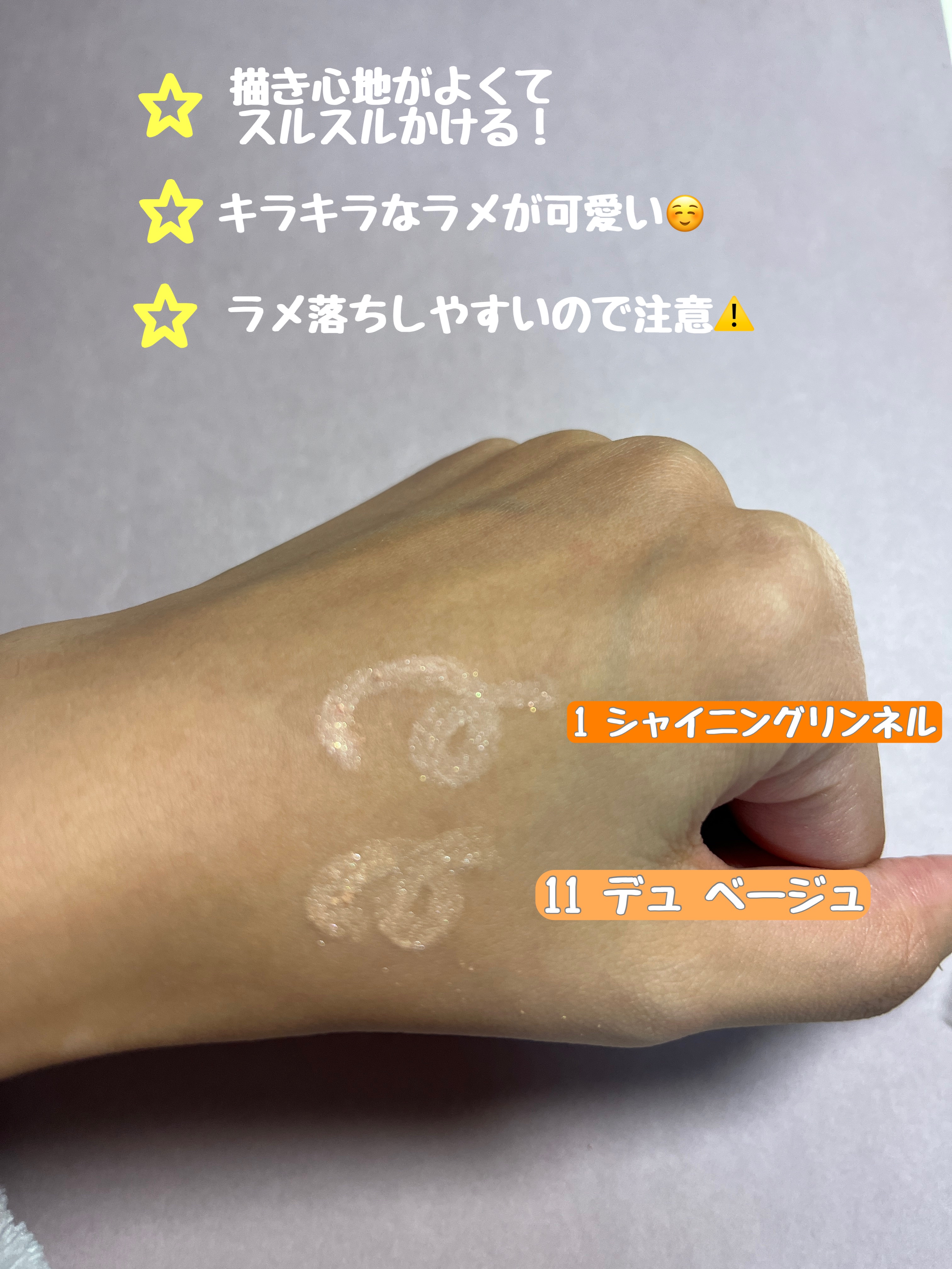 ▽toocoolforschoolフロタージュペンシル▽#1シャイニングリンネル#11デュベージュ⦅使用感⦆軽いタッチで色が乗ります。シャープナー付きです🙆♀️擦れには弱かったです😅どちらも多色ラメが入っていて可愛いです!...