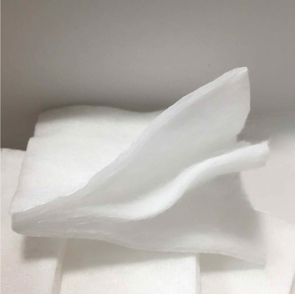 - 化粧水などを肌にたっぷりと閉じ込めるためにデザインされた3層構造の天然コットンです。