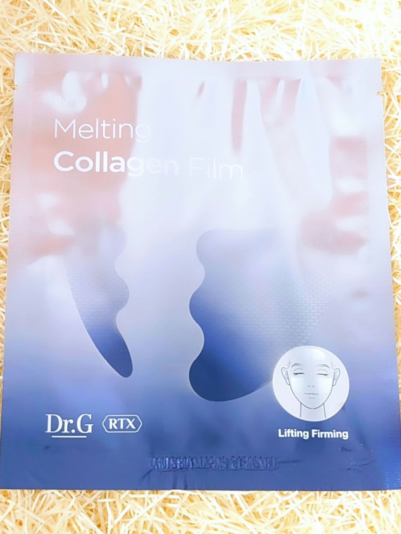 本格的なリフティングケアを自宅で! Dr.Gのフィルムタイプのセラム RTXイントゥメルティングコラーゲンフィルム🕊️ 肌に水分がある状態で白い面を肌に密着、吸収させて使います。 マリンコラーゲン99.86% ヒアルロン酸0.14%配合。コラーゲンでパンっと張ったハリ肌に