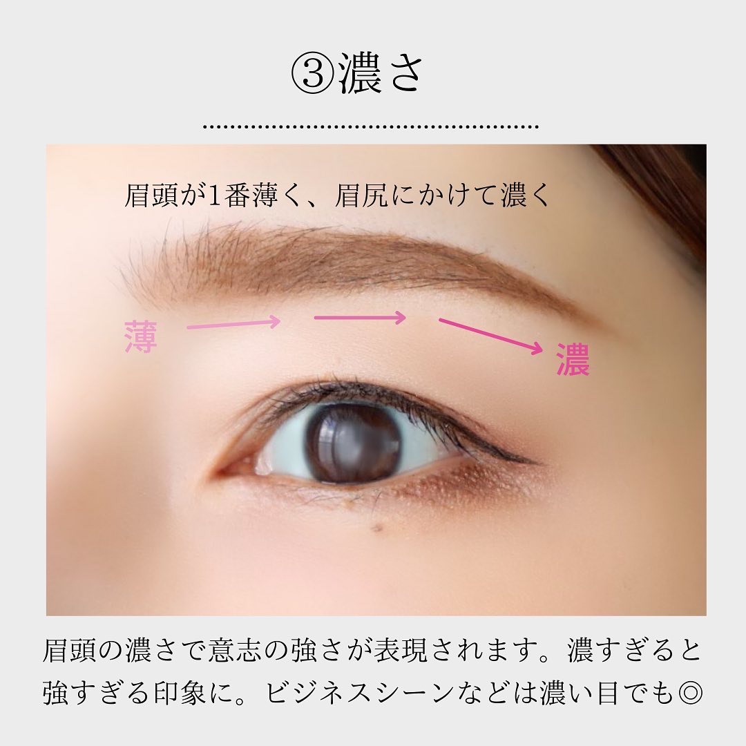 面長さん 【平行眉】がおすすめ★ 面長さんが角度のある眉毛を描いてしまうと輪郭の縦幅が強く強調されてしまいますᯅ̈ 丸顔さん 【アーチ眉】がおすすめ★ 平行眉を描くとのっぺりと平面的な印象になりやすいですᯅ̈ 逆三角形型さん 【長めな平行眉】 眉尻を長めに描くと小顔効果◎ 角度はつけず平行にするとシュッとした顎がマイルドに見える◎