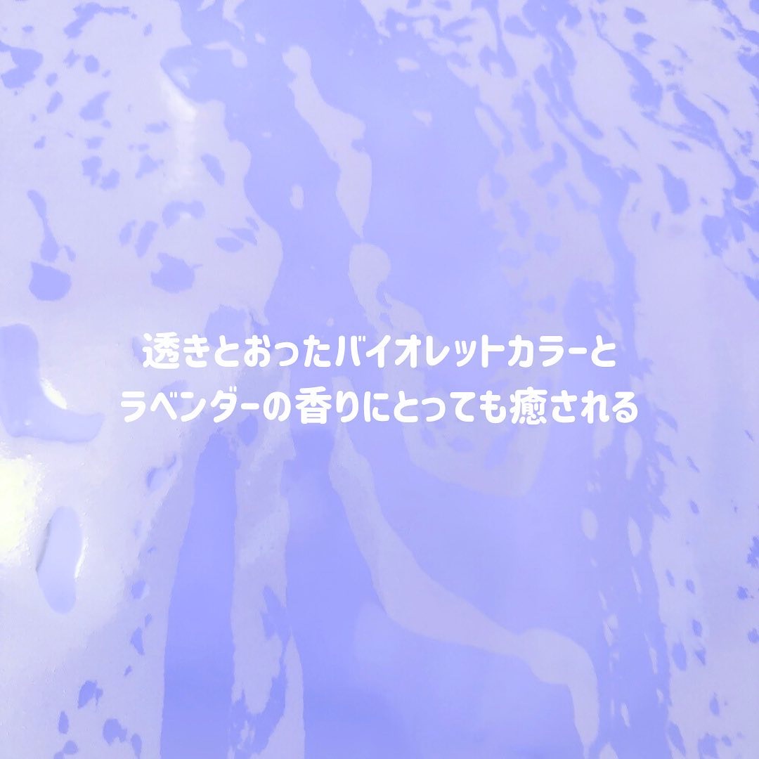 パケが目を惹き、オフロが楽しくなりそうな予感🤭💜 ずっしりと大きなタブレットを湯船にBombと入れると炭酸がはじけシュワシュワ〜っとマーブル泡が🫧 炭酸量MAX*²だそうで温浴効果も高く疲労回復も期待できるそう👍✨ 泡も楽しめるし、ラベンダーカクテルの香りも良く、お湯の色もスペースバイオレット(色つき透明)と薄い紫色が幻想的でホッととろけるような気分になり心地良い😌💜