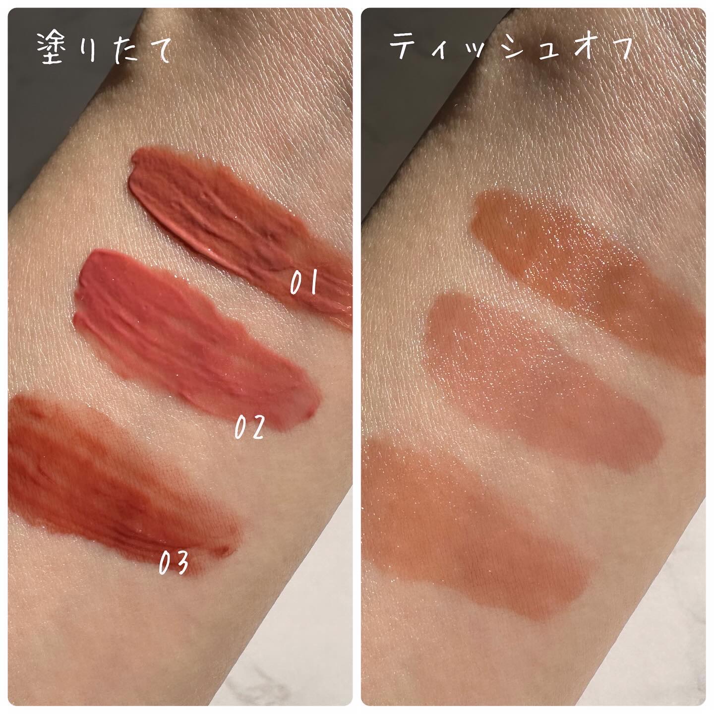 じゅわっとツヤがあふれてぷっくり仕上げ* 塗ったあとにツヤオイル膜が浮き上がる、ツヤUPテクノロジー✨️ リップティントの私的にこうだったらいいのにな〜って所が全て叶えられててめっっっちゃ好きでした😭💞💞💞 粘膜カラーで、白浮き無し、透明感あるちゅるんと感、おもたすぎないぷっくり唇😍😍😍 これ、、、数量限定なのー!?!! 公式みたら数量限定になってて、ぜひ定番化してほしいまじで好きすぎる😭😭😭😭