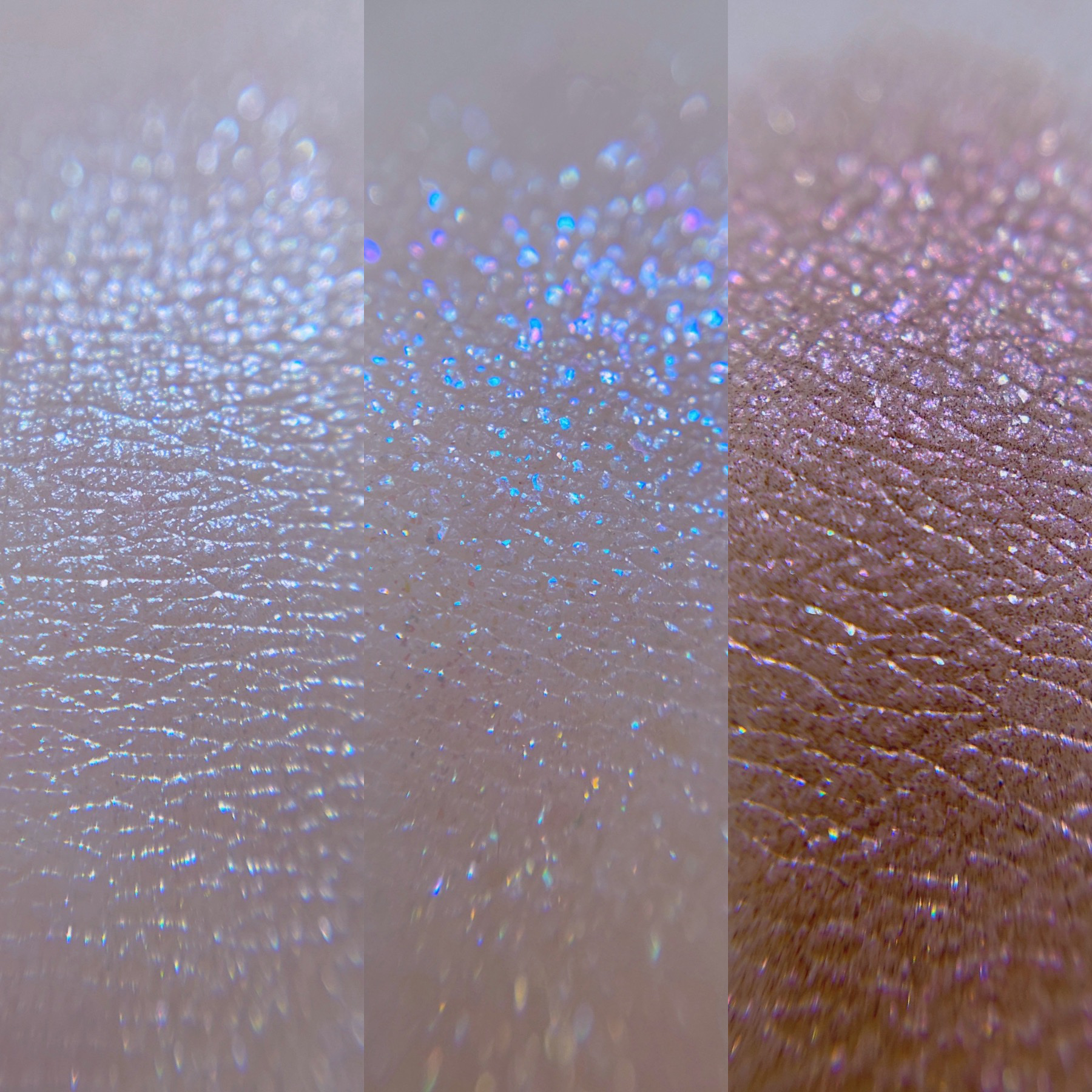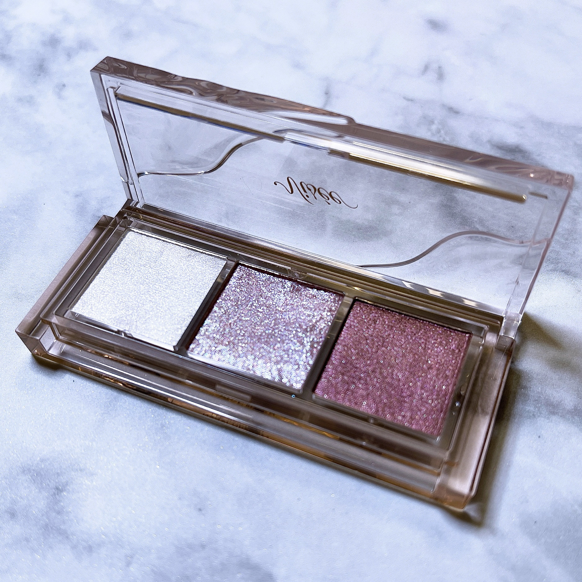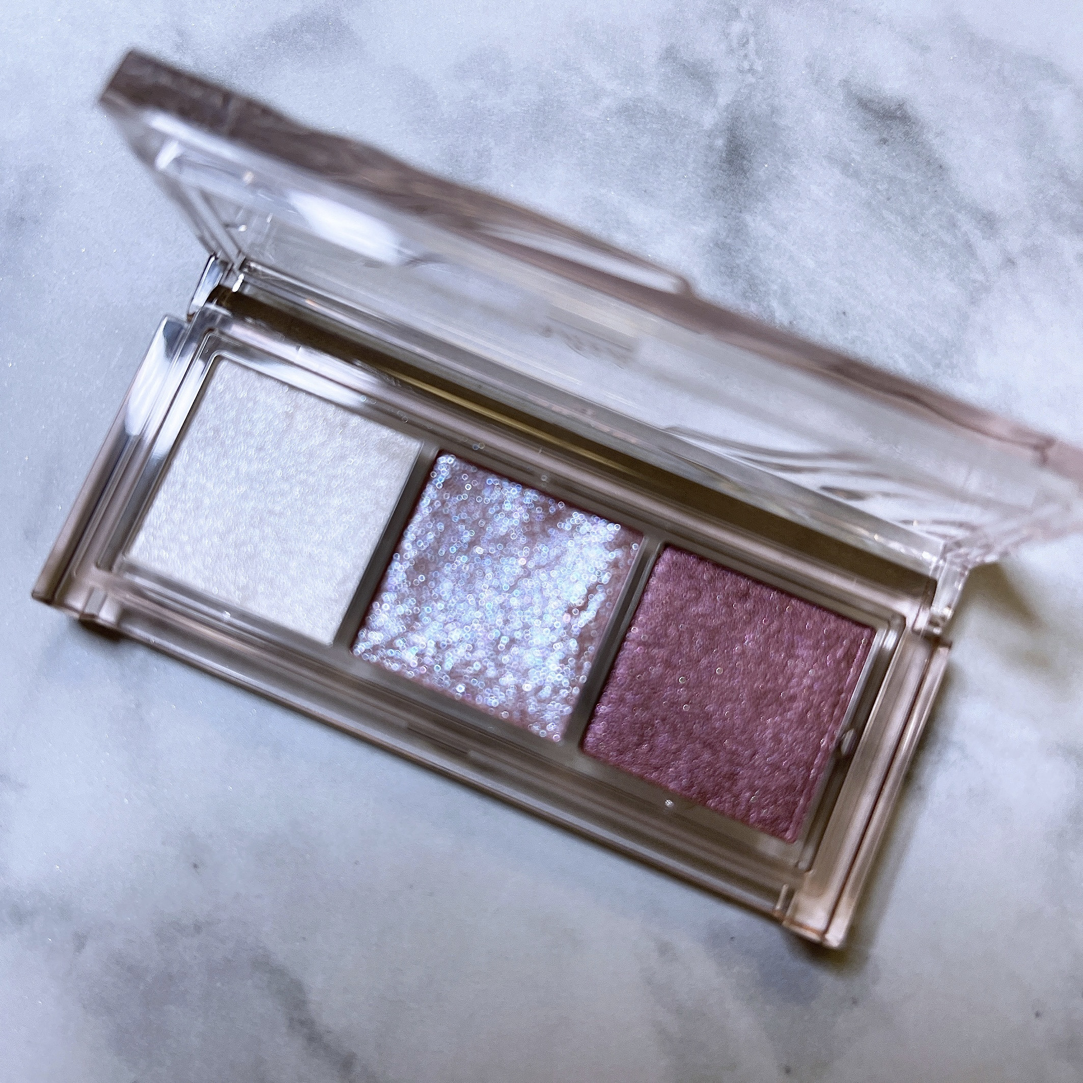 高輝度偏光パールと大粒グリッターを贅沢に配合した、3 色セットのアイカラー。まぶたにしっとりとけこむようにフィットして、大胆に輝き、色気を放つ目もとがつづく。 見る角度や光の当たり具合により色味が変化する高輝度偏光パール(カラーチェンジグリッター)を組み合わせて配合。まばたきや動きにより色と輝きが変化する、魅力的な目もとを演出。 化粧もちを高めるフィットオイル成分配合。まぶたにピタッと密着し、パール落ちを抑制。高い透明感とツヤ感も付与し、美しい仕上がりが持続。