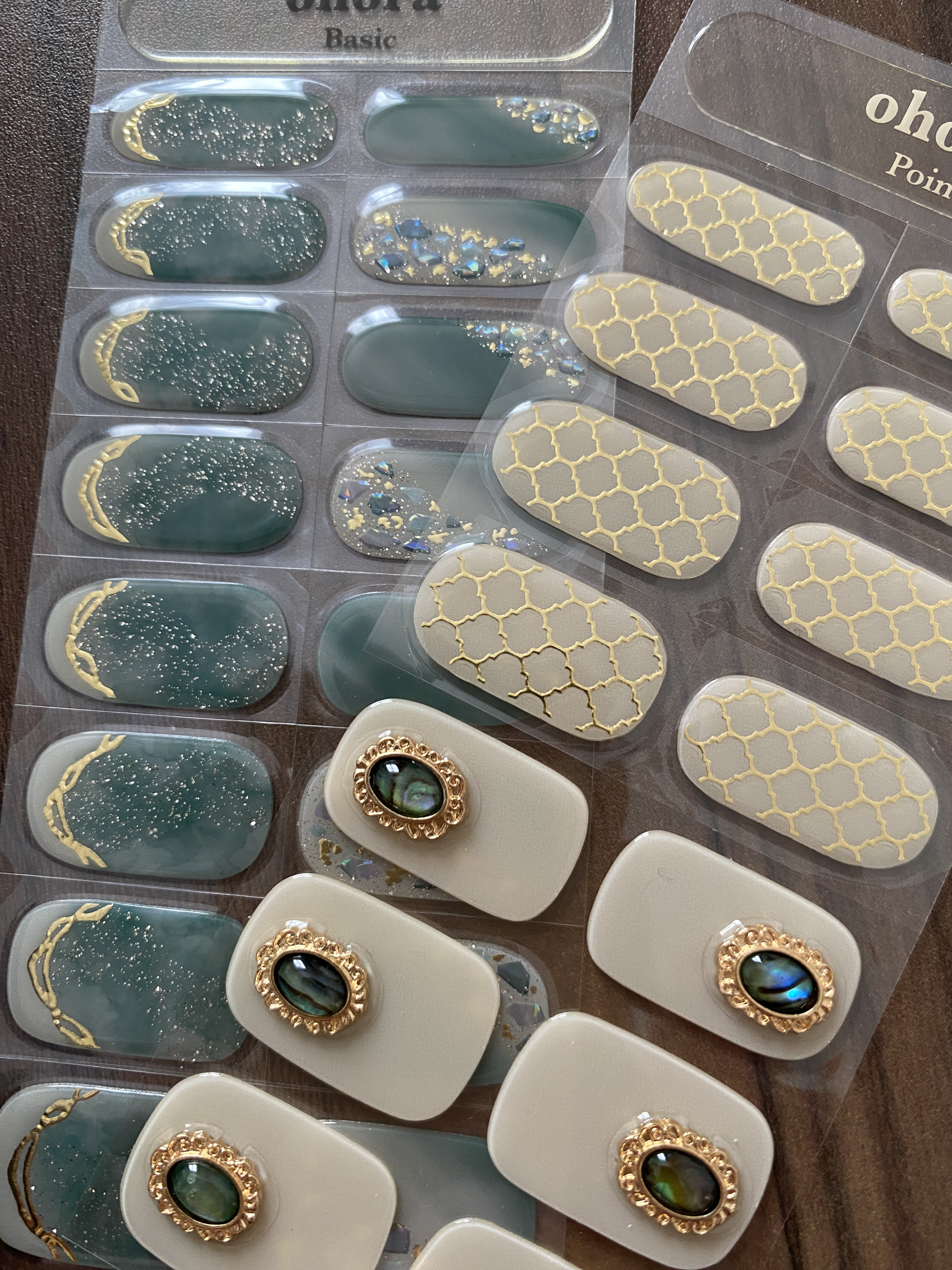 4種類も違うデザインがはいってて めちゃくちゃオシャレ💅˗ˋˏ ♡ ˎˊ˗ 美のエネルギーあふれるパワーストーンネイル。鮮やかで透明感のある天然石を集めたようなカラーリングが魅力。 パワーストーンのように指先のお守りとなるネイル。組み合わせや並べ方をいろいろ楽しめ、おしゃれの幅を広げます。