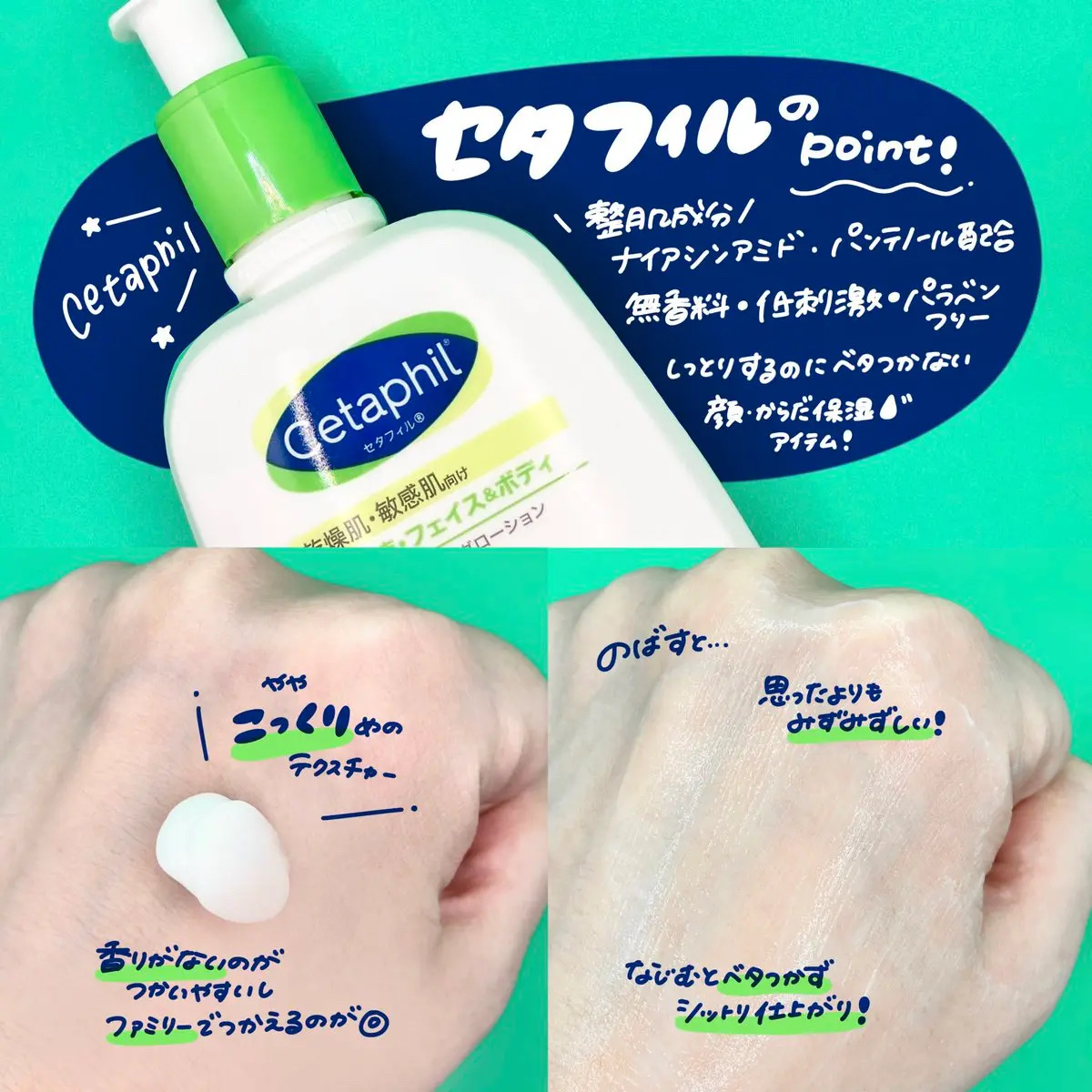 - 也ç¥èã»ææèåãä¿æ¹¿ä¹³æ¶² ãã§ã€ã¹ïŒãã㣠é«ä¿æ¹¿ãªããããã§ããã£ãšããªãããèãž ãã€ã¢ã·ã³ã¢ãã*1ããã³ãããŒã«*1ãã°ãªã»ãªã³*2é åã èãªãã¿ã®ãããããã£ãšãã䜿ãå¿å°ã ã»é«ä¿æ¹¿ãªããããã§ããã£ãšããªããããªèãžå°ããŸãã ç¡éŠæãäœåºæ¿æ§ã æ¥æ¬ã®ææèã®æ¹ã§ããããã¹ã*3ãã¹ãã£ã³ã®ã³ã°ãã¹ãæžã*4 *1: ç®èã³ã³ãã£ã·ã§ãã³ã°æå *2: ä¿æ¹¿æå *3: ãã¹ãŠã®æ¹ã«ç®èãã©ãã«ããããªãããã§ã¯ãããŸããã *4: ããªããªãããªããªãšãã£ã䜿çšçŽåŸã®åºæ¿æã確ããããã¹ãã§ãããã¹ãŠã®æ¹ã«åºæ¿æããªããšããããã§ã¯ãããŸããã