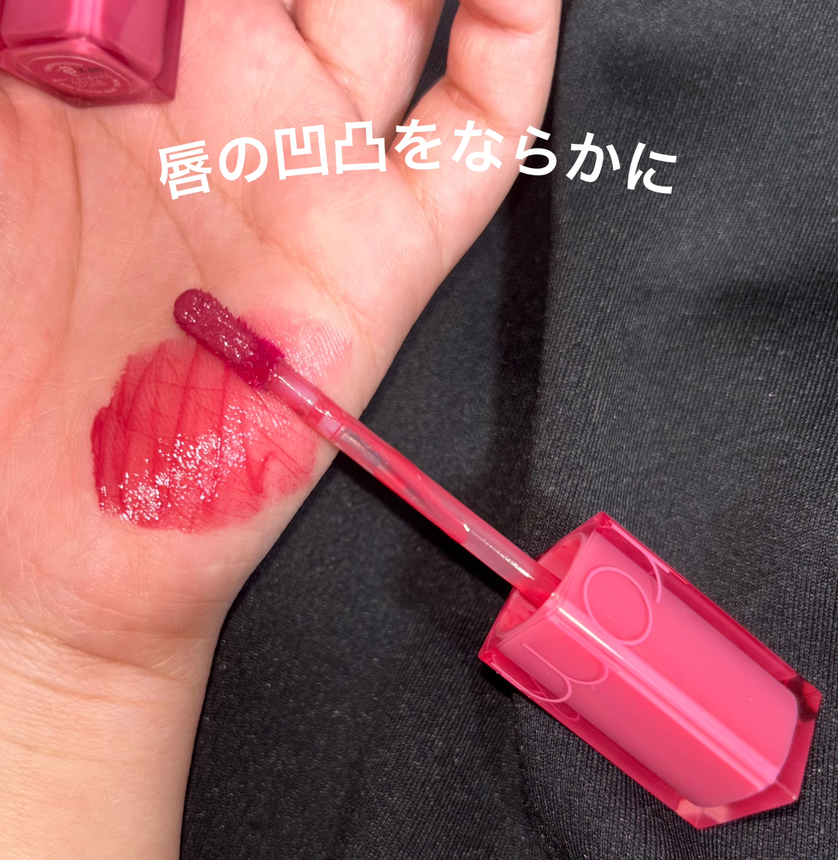 このティント独特の潤いがありつつ軽い塗り心地・オーバーリップに使用しても、色残り◎ うさぎ舌ピンクという感じ(青みピンク)・ツヤ感が強い なんども塗り直すと、青みが強くでる・唇の内側だけ色がついて残った