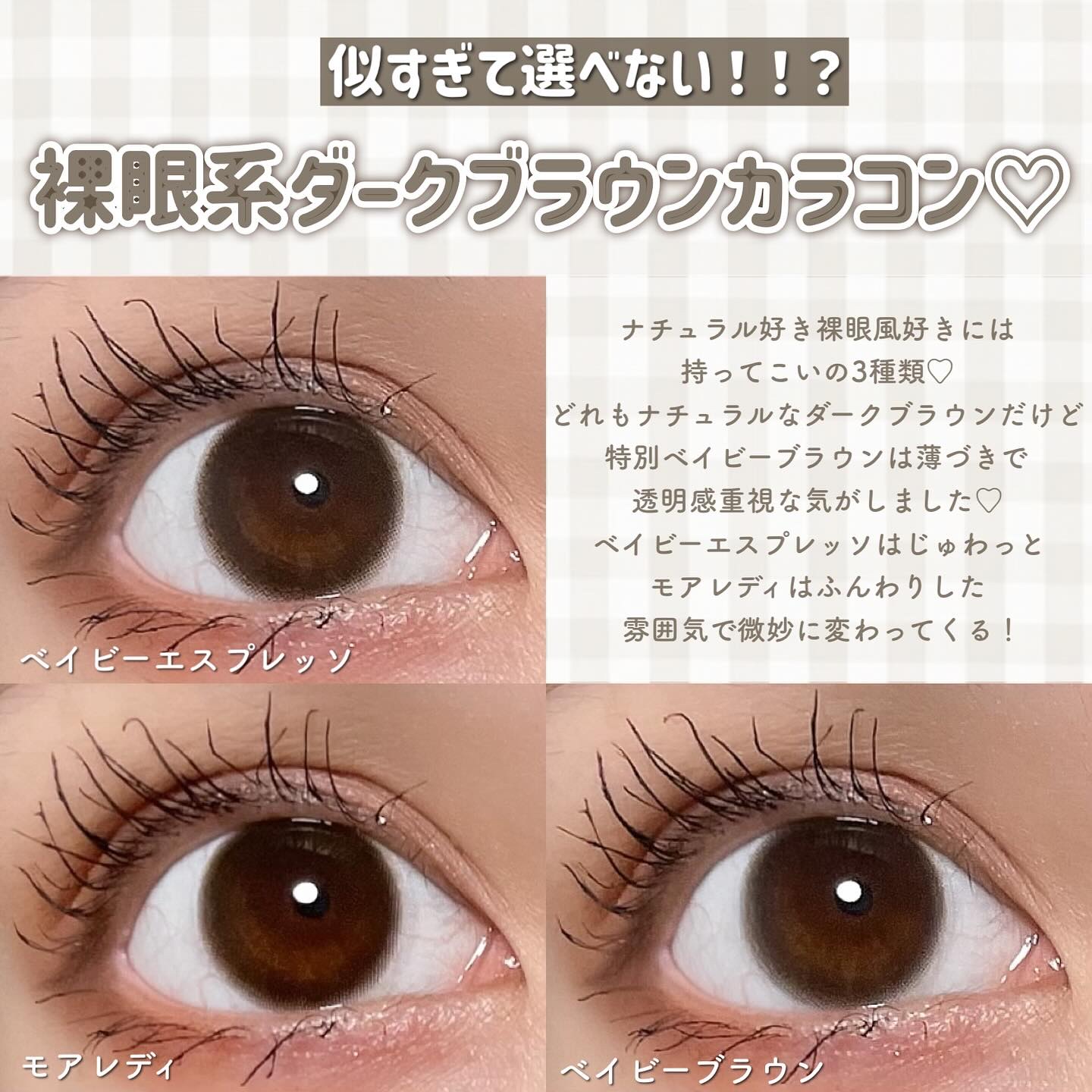 ちゅるんダークブラウンカラーで、赤ちゃんのようなピュアな瞳に👼🏻 接近戦でも優勝できるレンズです🥺💓 着色直径13.7mmでしっかり大きさは感じるけど、ぼかしフチで自然な盛れ感で万人に使いやすそうです💭