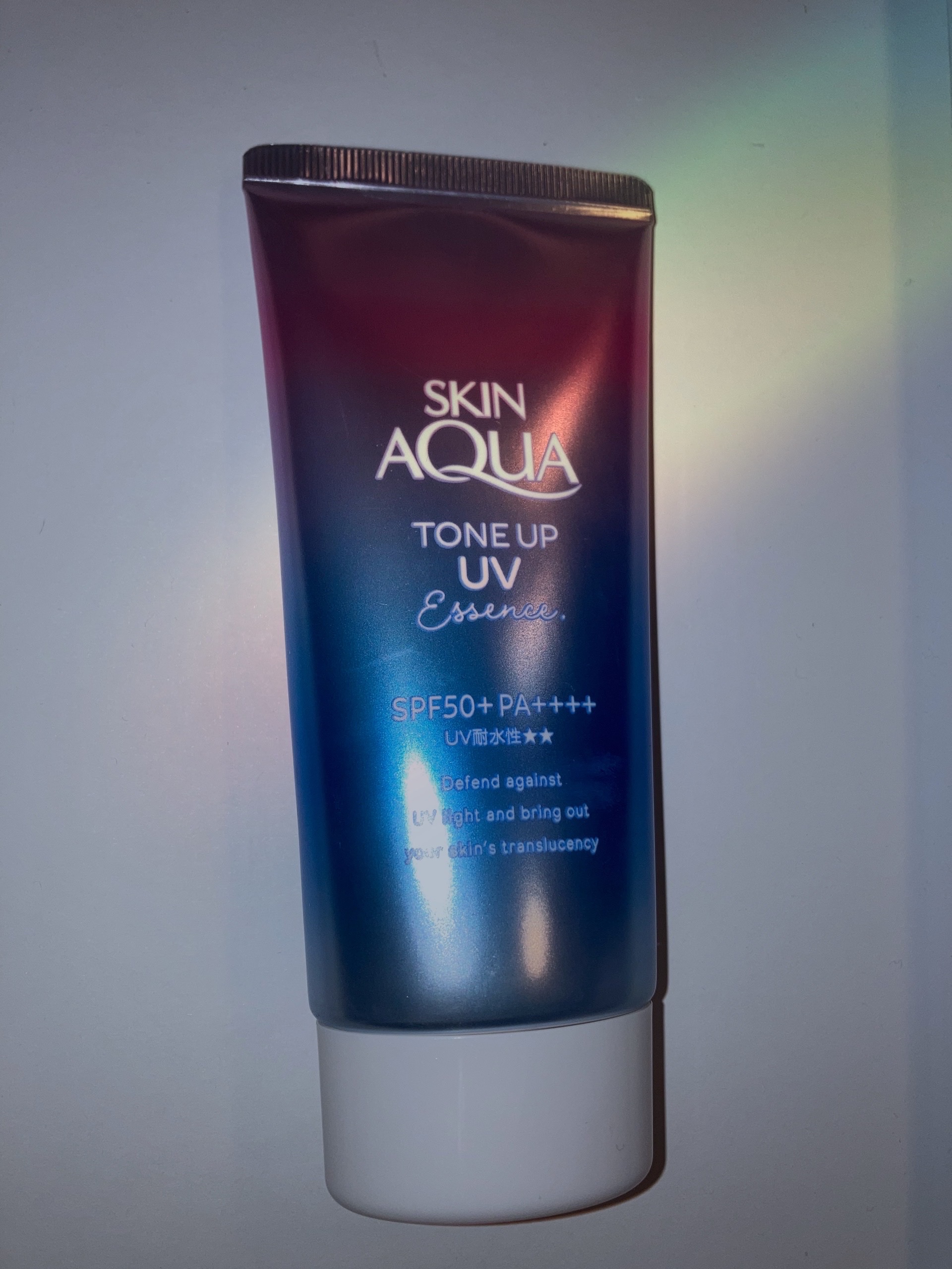 - ※カラー名称「ハピネスオーラ」は「ローズ」へ名称変更となりました。 <ミントグリーン> 赤み補正*1!UVカットしながら、色と光をコントロールし、肌をトーンアップ*1。 ミントグリーンカラーで透き通るような素肌つづく!エッセンスタイプの日焼け止め。 透明感*1のある肌に。 SPF50+、PA++++、UV耐水性★★。 鉱物油フリー。パラベンフリー。ときめくサボンの香り。 <ラベンダー> 明るさ補正*1!UVカットしながら、色と光をコントロールし、肌をトーンアップ*1。 透明感*1を引き出すラベンダーカラーの日焼け止め。 すーっとのびて、みずみずしい使い心地のエッセンスタイプ。 SPF50+、PA++++、UV耐水性★★。 鉱物油フリー。パラベンフリー。ときめくサボンの香り。 <ローズ> 血色感補正*1!UVカットしながら、色と光をコントロールし、肌をトーンアップ*1。 ローズカラーで血色をプラスし、透明感*1のある肌に。 エッセンスタイプの日焼け止め。 SPF50+、PA++++、UV耐水性★★。 パラベンフリー。ハピネスブロッサムの香り。 <ブルー> UVカットしながら、色と光をコントロールし、肌をトーンアップ*1。 血色感を抑えて儚げな色白肌*1に見せるブルーカラーの顔・からだ用日やけ止め。すーっとのびて、みずみずしい使い心地。 透明感ブルー×透明感ホワイト=はかなげブルーカラーで、自分史上最高*2の色白肌*1、うるおう美容液成分(うるおい成分)としてヒアルロン酸Na、ビタミンC誘導体*3配合。 SPF50+/PA++++。こころがときめくサボンの香り。化粧下地にも。石けんで落とせます。 パラベンフリー。鉱物油フリー。アレルギーテスト済み(全ての方にアレルギーが起こらないというわけではありません)。 *1:メイクアップ効果による *2:スキンアクアシリーズにおいて *3:リン酸アスコルビルMg(うるおい成分)