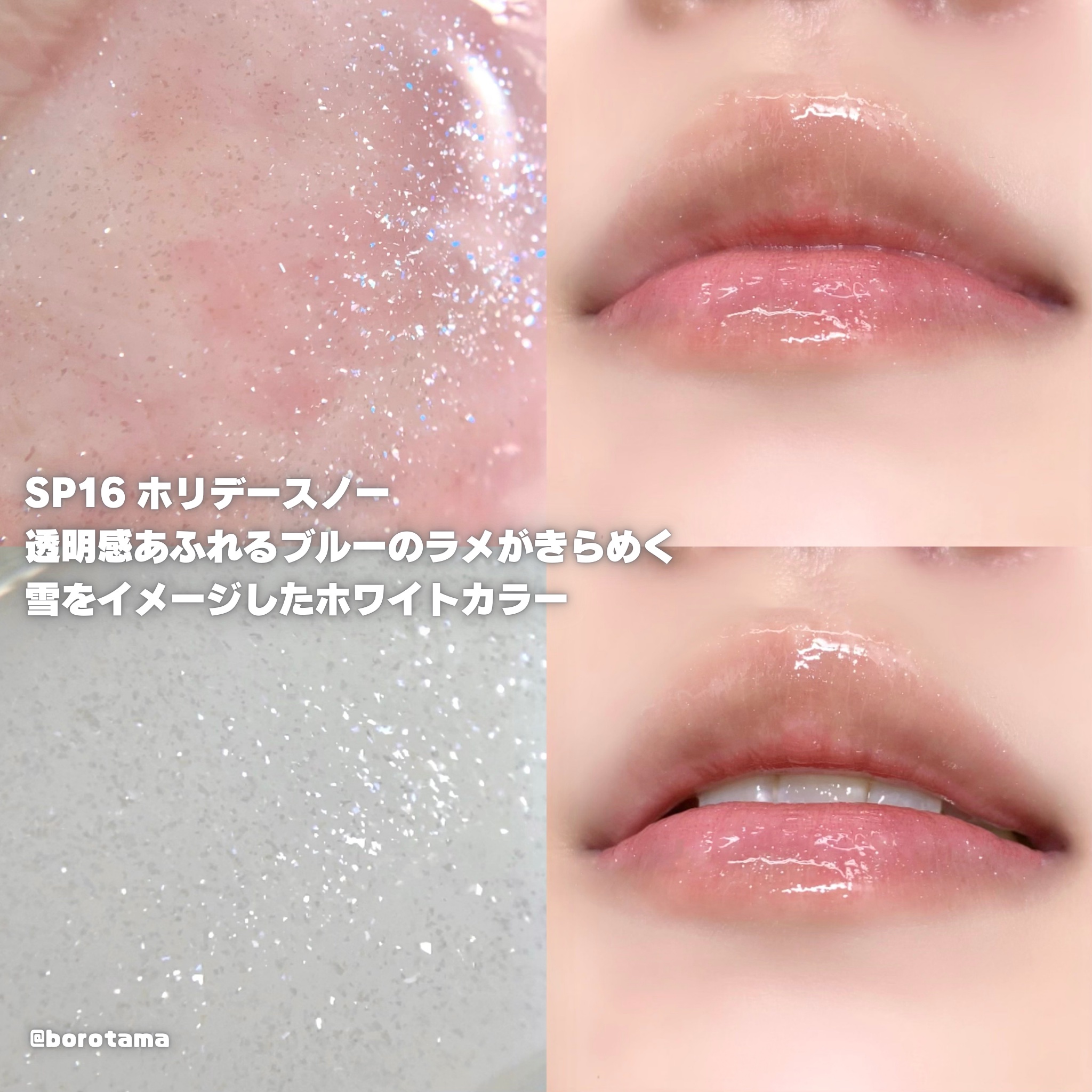 HolidayLimitedItems❄️✨🩵ちゅるリップランパーSP16ホリデースノー税込990円大小異なる大きさのラメ&パールを配合したトリートメント効果のあるオイルリップ💧雪のように真っ白なホリデー限定カラー!高保湿・高密着でツヤ...