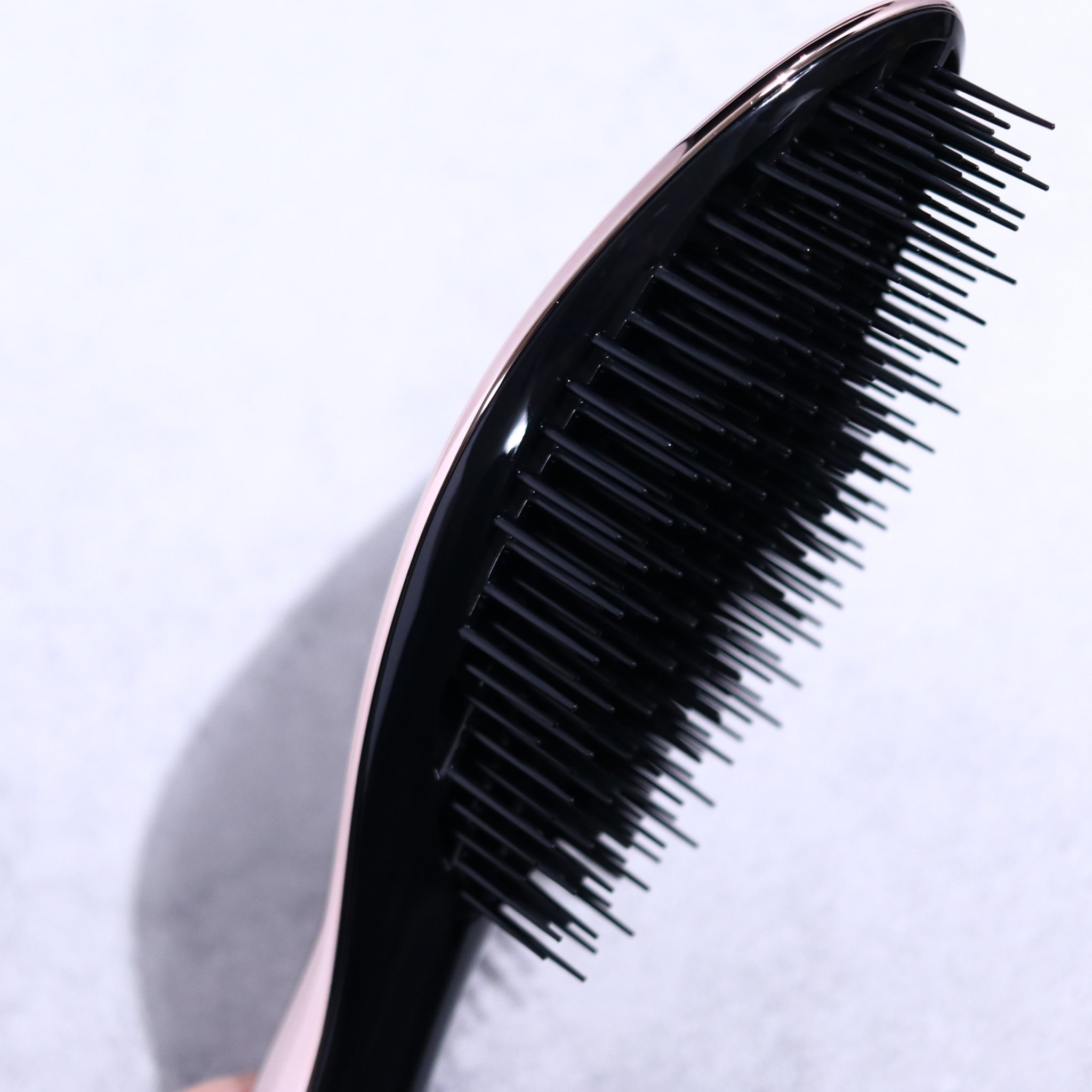 - ①「ほぐし」と「みがき」を同時に叶える3段構造のピン 【みがきピン】 あらゆる角度から髪のからまりをキャッチ。 ダメージを与えずにやさしくほぐします。 【みがきピン】 髪の表面をなでるようにブラッシングします。 ツヤを取り戻し、指通りもなめらかに。 ②髪の面を一気に整えて、まとまり感を上げる 頭の丸みにフィットするラウンドフィット形状とロングなピンで、ブラシを通しづらい後ろ側や内側の髪もしっかりキャッチ。一度に広範囲をブラッシングできるから、面がそろってツヤもアップ。より隙のない美しいスタイルに導きます。 ③まとめ髪もワンストロークで決まる 後頭部の髪もワンストロークでこぼさずキャッチ。アップスタイルなどのスタイリングも簡単に。 ④髪だけでなく頭皮も 先端を丸く加工したピンが、頭皮を心地よく刺激。帯電防止剤配合で静電気を軽減します。