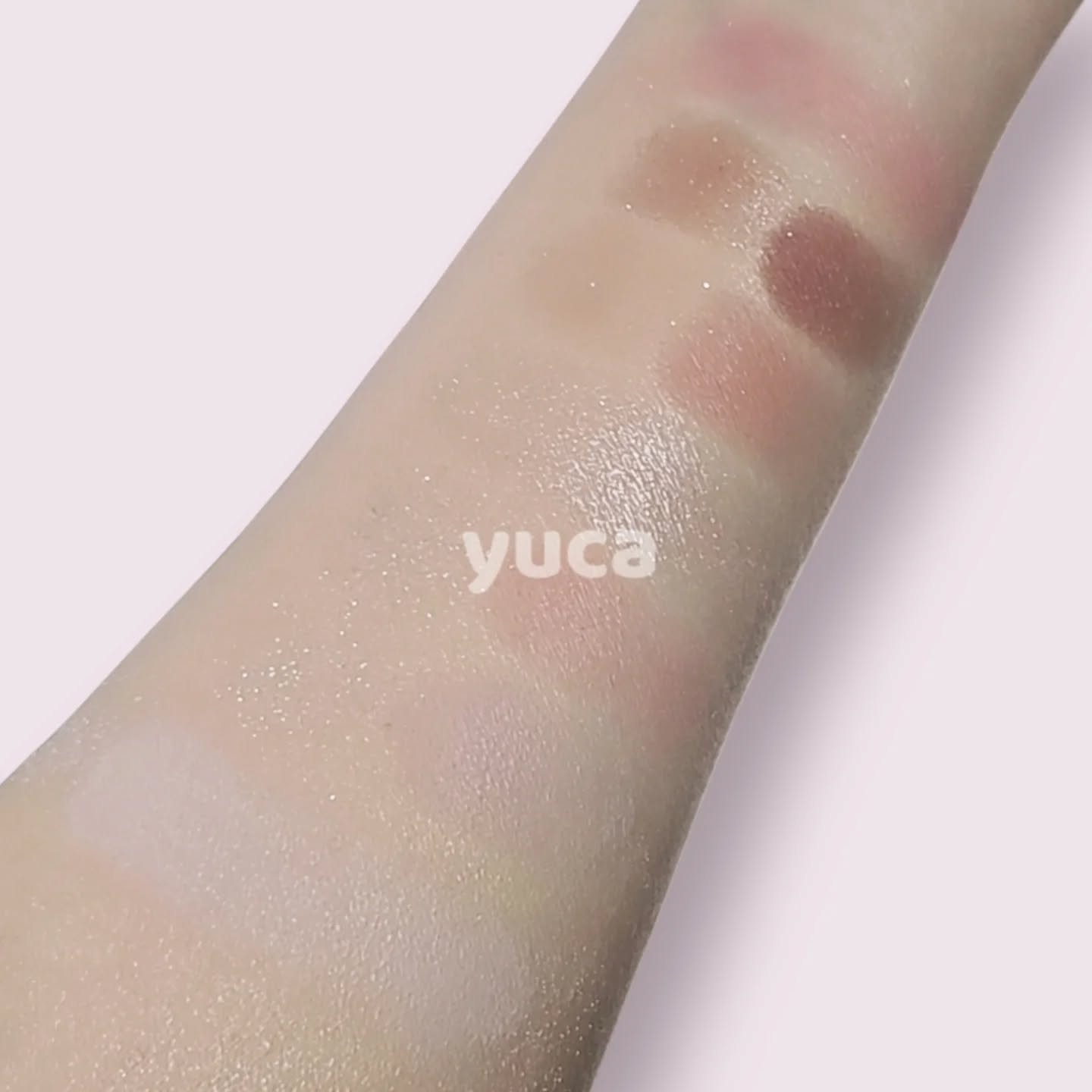 なんとなくだけど左側がブルベ寄り、右側がイエベ寄りの色味でニュートラルなパレットかなと思いました。 目元写真みると発色薄く見えるかなとおもいますが朝メイクして、直さず夜に撮ったのでこんな感じです。 カラコンはmimucoのブラウンフォンデュミムコのカラコンはどれも自然でかわいいです。