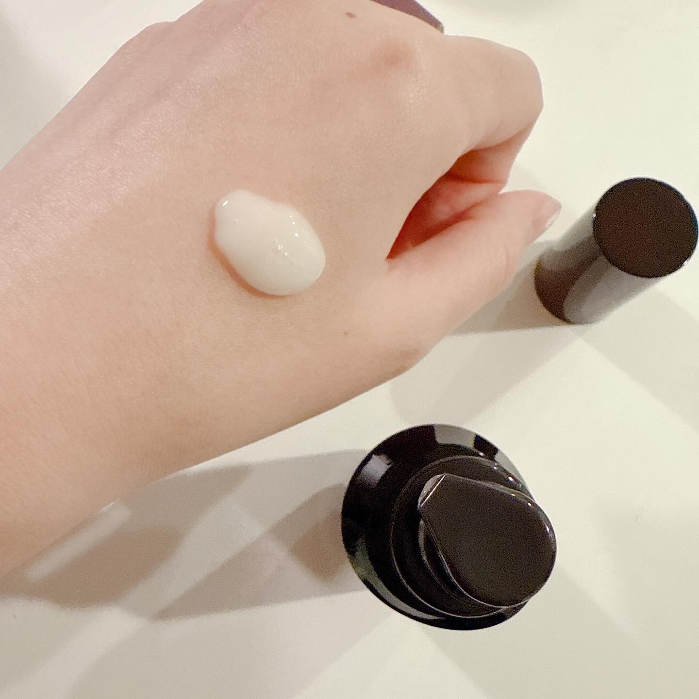 こちらは有効成分の「ナイアシンドアミド」配合✨肌の奥の真皮層までアプローチし、エイジング悩みのシワをケアしてくれます♪ とろみのあるテクスチャーで、マイルドな肌あたりです☺️ 肌馴染みが良くしっとりとした使い心地です✨ 一回の使用量は100円玉一枚分が目安と少量なんですが伸びが良いので十分でした🙆♀️ しっとりとした使い心地ですがべたつかないのが良いです✨