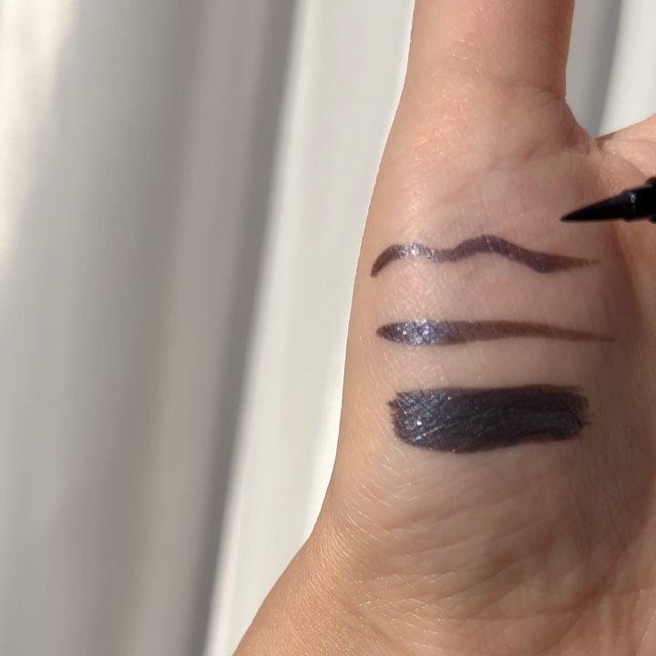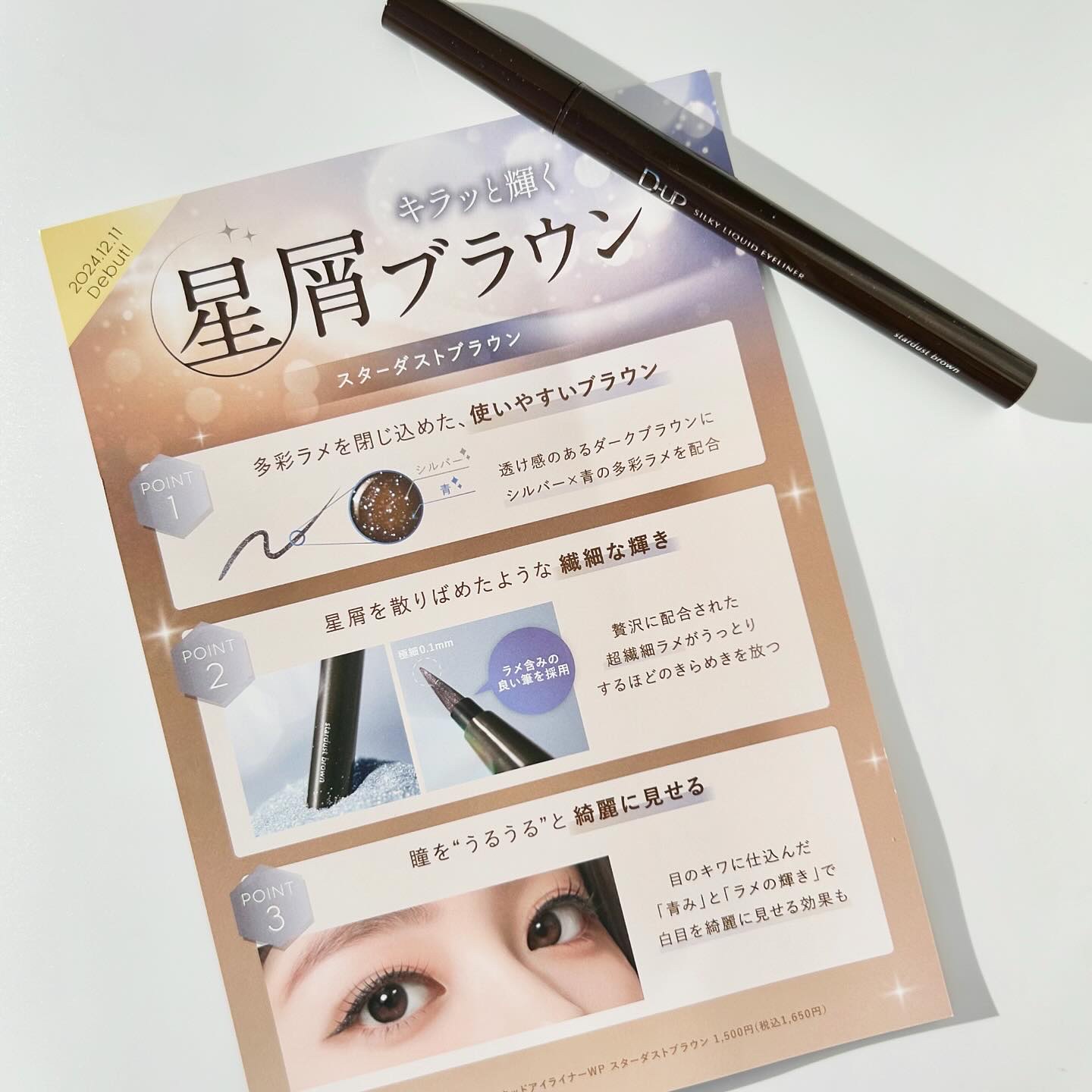 使いやすいブラウンに、シルバーと青の繊細なラメがたっぷり入った '星屑ブラウン' アイライナー💫 まるで夜空にちりばめられた星屑のようにキラキラ発色💎 透明感のある印象になるよ👀✨ 青みカラコンとの相性◎