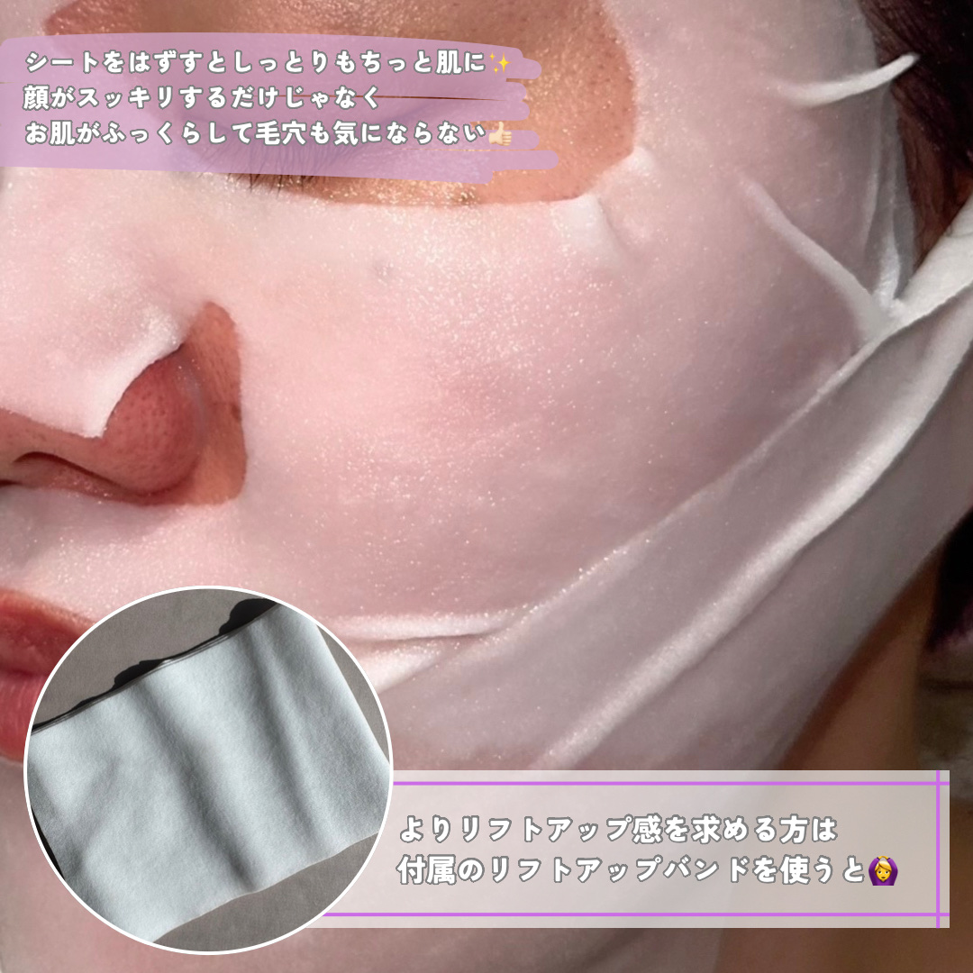 長寿遺伝子を活性化させる次世代エイジングケア成分として、世界の学会でも注目されている成分なんだとか💡 上下に分かれているタイプで、上用のシートは毛穴、弾力ケアができるNMNエッセンスたっぷり 小顔リフトバンドもついていてマスクをつけた上につけることでフェイスラインもキュッと期待できるんです😍