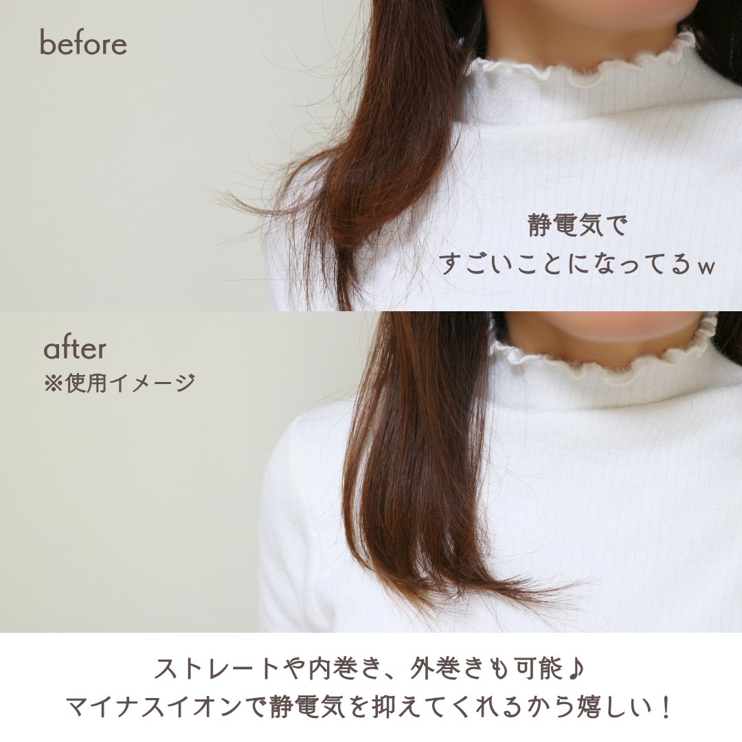 - POINT1:コードレスでどこでも使える→ヘアスタイリングが崩れてしまう前に手軽にケアできます POINT2:マイナスイオン効果→静電気と髪への乾燥ダメージを防いでふんわりボリュームアップに仕上げます POINT3:ストレート&カール両用→手を添えて理想のスタイリングに
