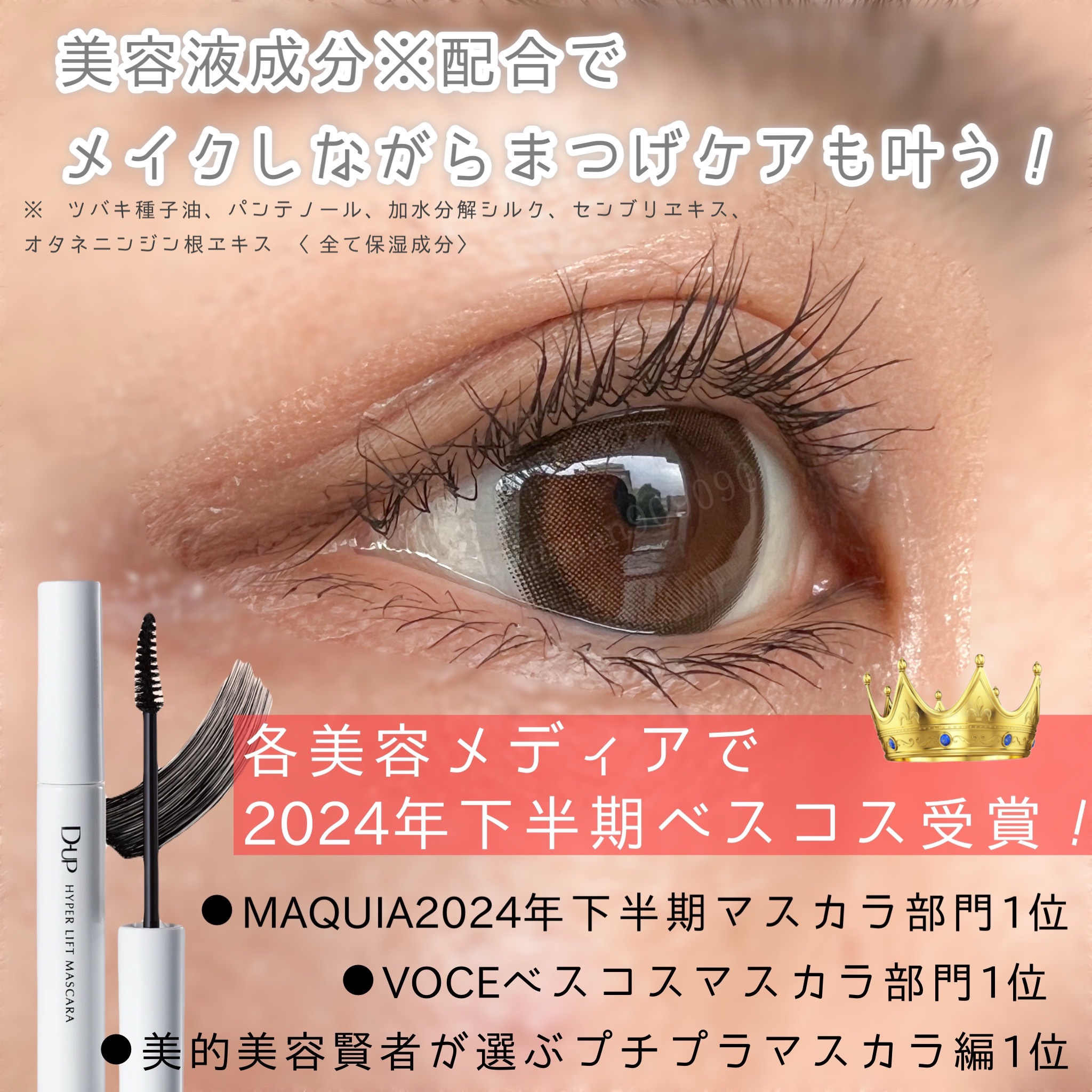- LIPSベストコスメ2024 下半期新作賞 マスカラ部門1位LIPSベストコスメ2024 下半期こだわりアワード マスカラ部門カール賞1位LIPSベストコスメ2024 下半期こだわりアワード マスカラ部門束感賞3位LIPS月間トレンド賞2024年11月 コスメ部門3位