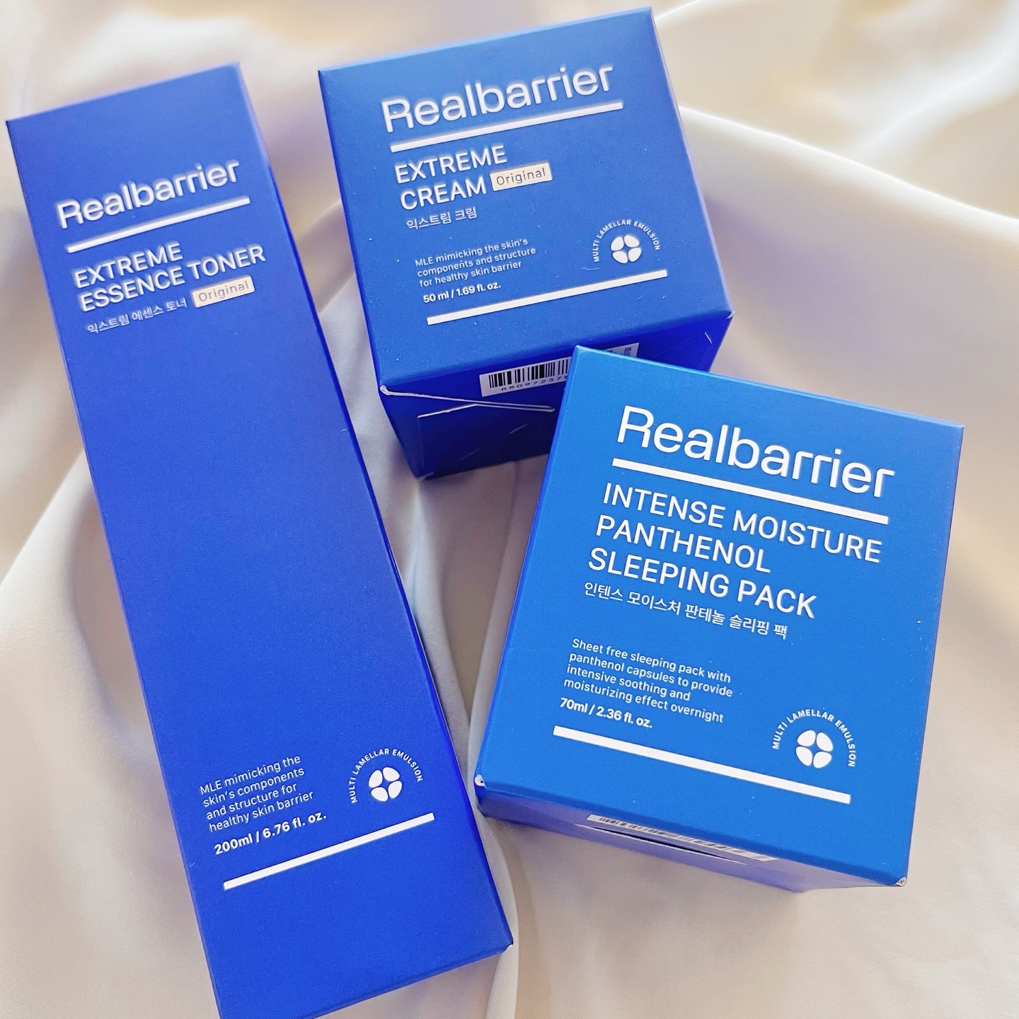 リアルバリアさんのアイテムって好きだな〜と改めて実感しました。どのアイテムもクセがなくて使いやすい、だけど肌をしっかり保湿してくれる点がお気に入りです❤️ 代表アイテムである、エクストリームクリームは、かなりこっくりとした濃厚なテクスチャー。一塗りで朝まで保湿してくれるので、特にまさに今の冬に使うのが本当おすすめです🙆 エクストリームエッセンストナーは、白濁色をしていてややとろみがあるテクスチャー。シャバシャバ使うというよりは、肌に浸透させるような濃厚さがあり、トナー段階で肌を保湿できました😄