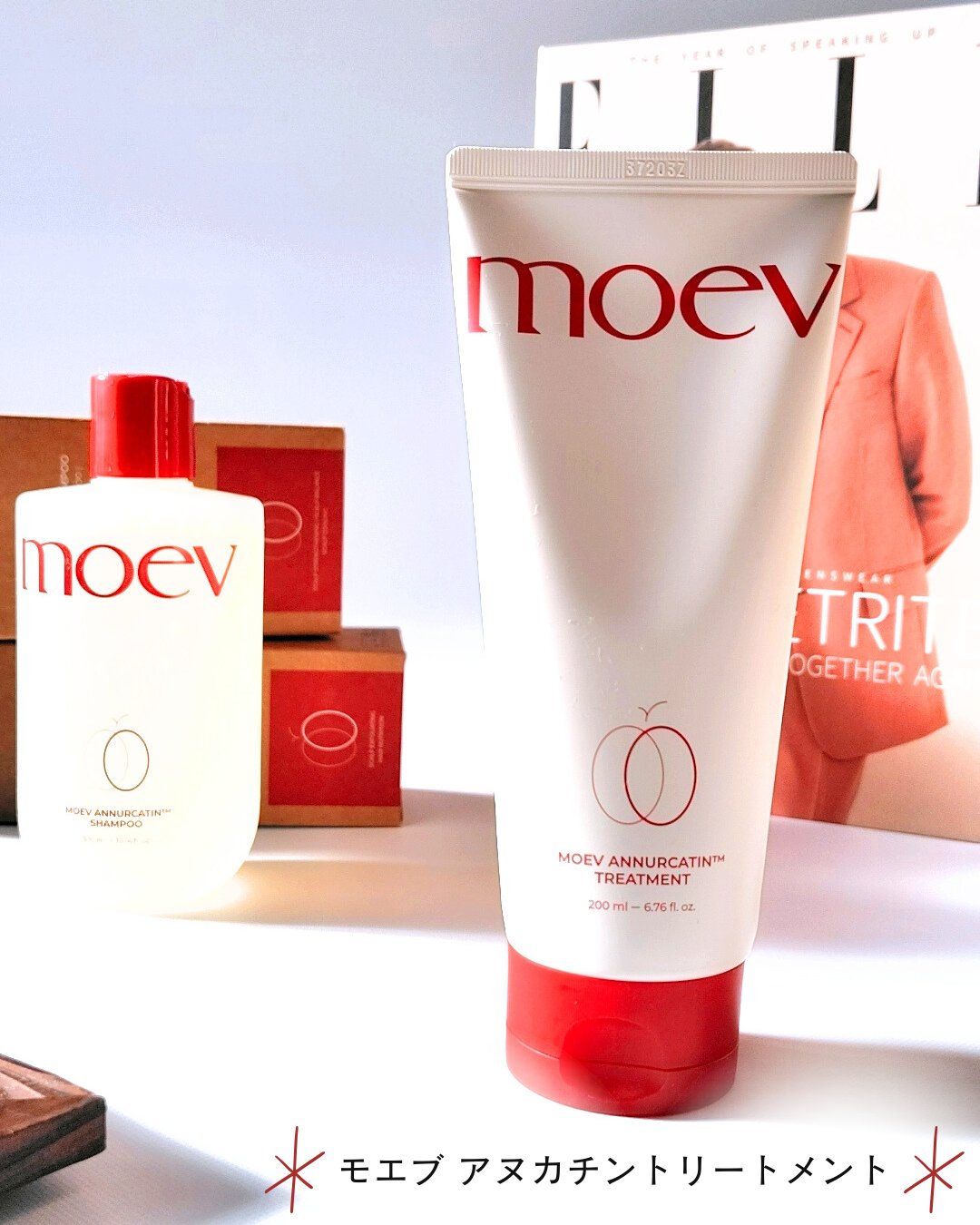 モエブだけの癒しのシグネチャーな香りがするよ🌿 りんごの皮の香りのようなフルーティーシトラス&フローラルウッディの香り シャンプーはとっても泡立ちが良くて、少量でもすごい泡!頭皮までしっかりと泡で包み込んで汚れを取り除いてくれるよ🫧 トリートメントは、コッテリと髪に密着しやすいテクスチャーで頭皮がスーッとするメンソール感あり🌱✨
