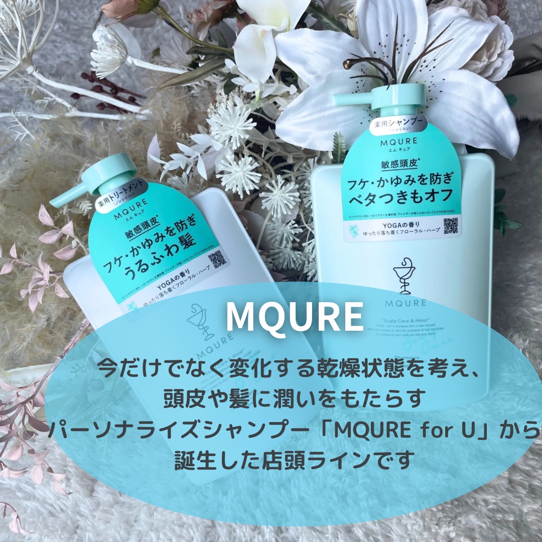 髪と頭皮のうるおいバランスに着目したヘアケアブランド、エムキュアの薬用シャンプー、トリートメント🧴 かゆみ、ベタつき、フケ、ニオイなど、様々な頭皮のトラブルにアプローチ! フローラル•ハーブのYOGAの香りも爽やかでとてもいい香り🌿