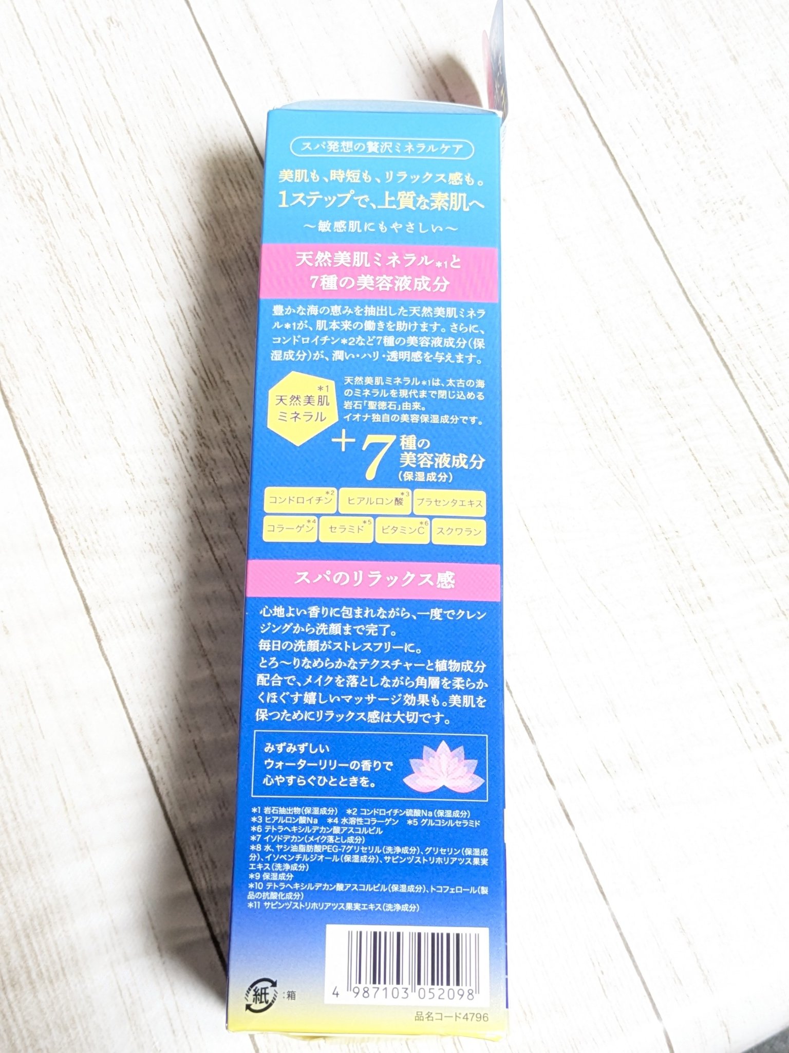 イオナスパ&ミネラルさまよりいただきました。Wクレンジングを使わせていただきました🤍\スパ発想の贅沢ミネラルケア!/透明でとろみも感じられるようなさらさらとしてみずみずしいテクスチャー✨肌に塗布すると、とろりとしたオイルのような感じがしたと思...