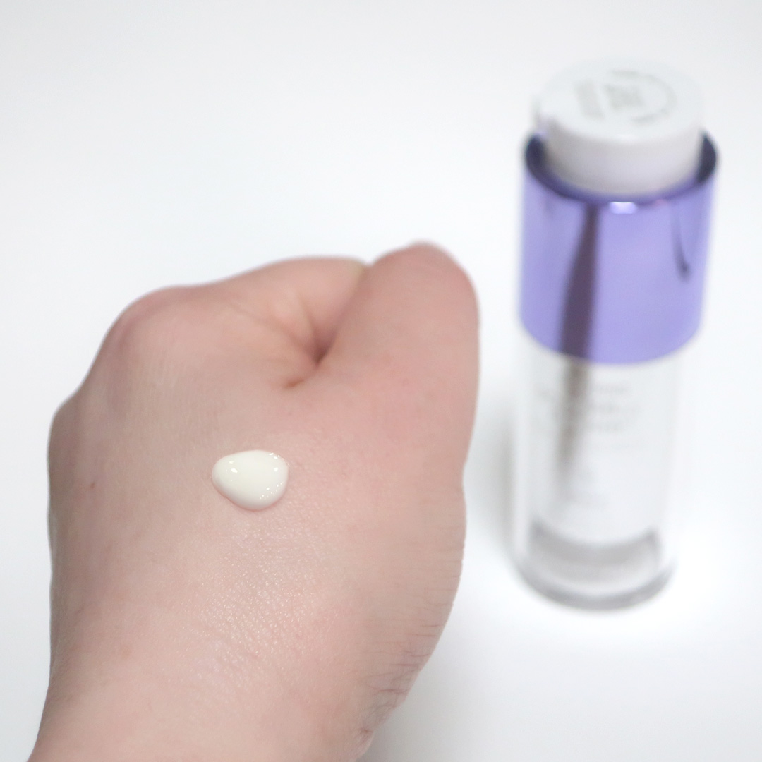 高級感のあるおしゃれなパッケージです。二層式なので、よく振ってから使います。プッシュタイプの容器で使いやすいです。2プッシュくらいを顔から首にかけてなじませています。二層が混ざりあった美容液は、伸びのいいテクスチャーです。フレッシュフローラル...