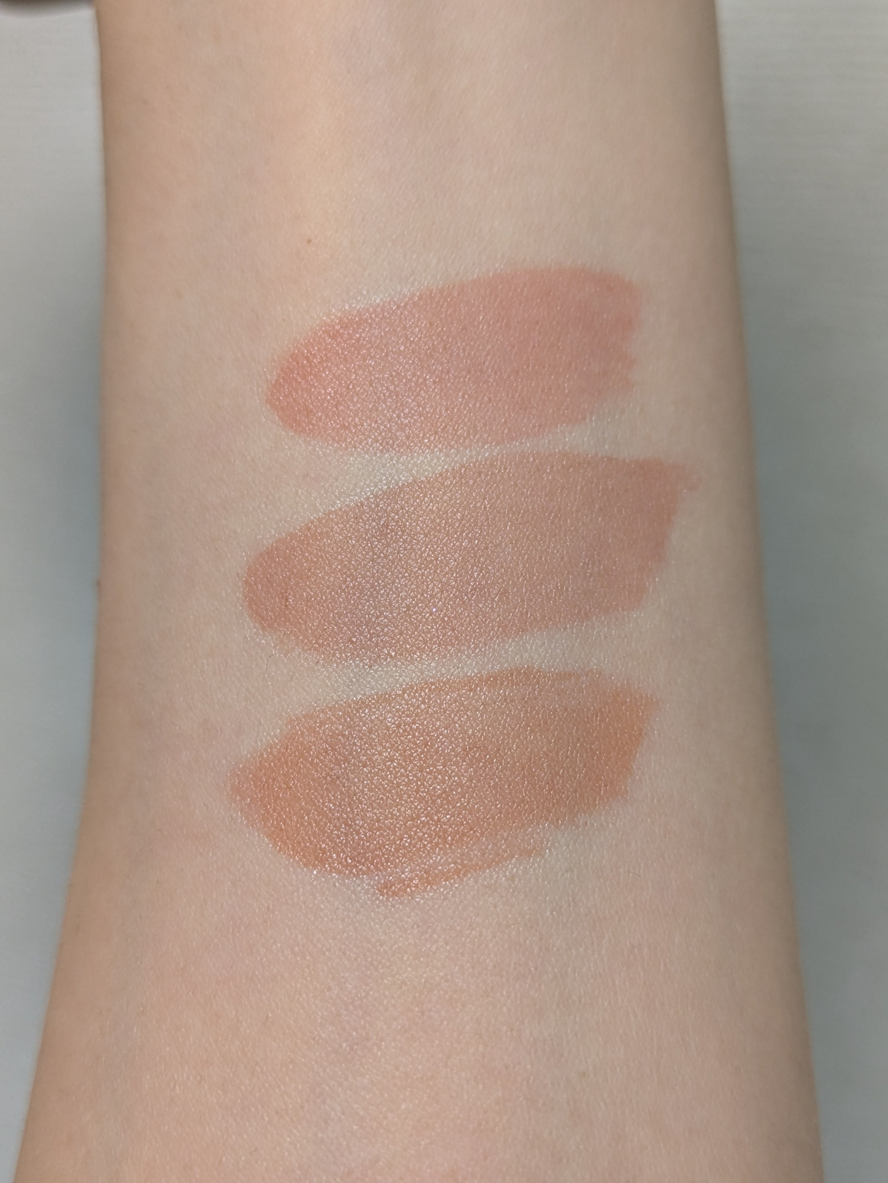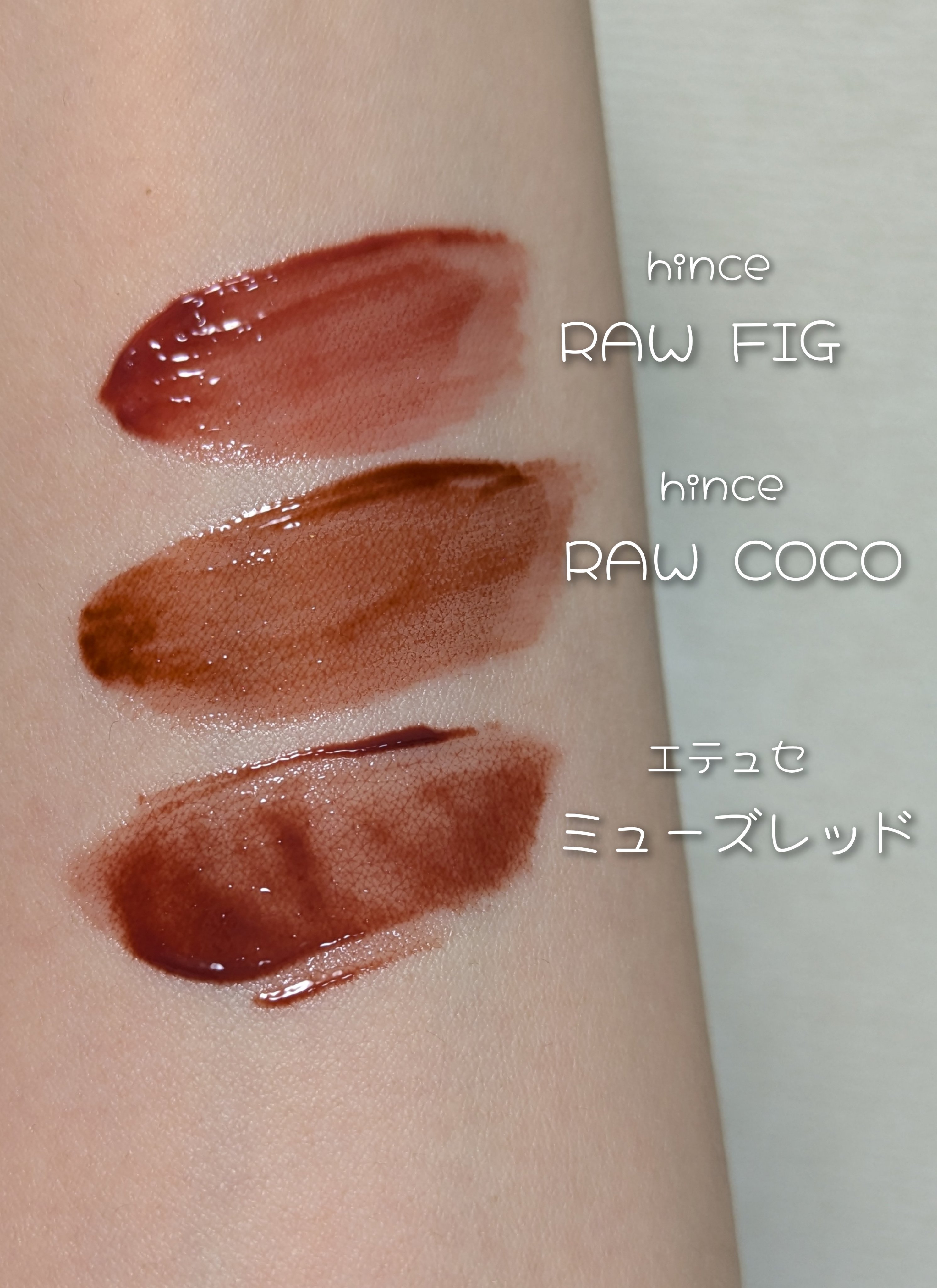 じゅわっとツヤ溢れるぷっくりティント♡✨ ettusaisのホリデーコスメ タイムスリップ3色をスウォッチ🥰 新作リップはどれもベージュを混ぜた肌なじみの良い、可愛い粘膜カラー😍 オイルインウォーター処方だからするする塗れて、ちゅるんとした仕上がりに♡ 私はピンクベージュな02番がお気に入り🌸 無香料だよ🫶