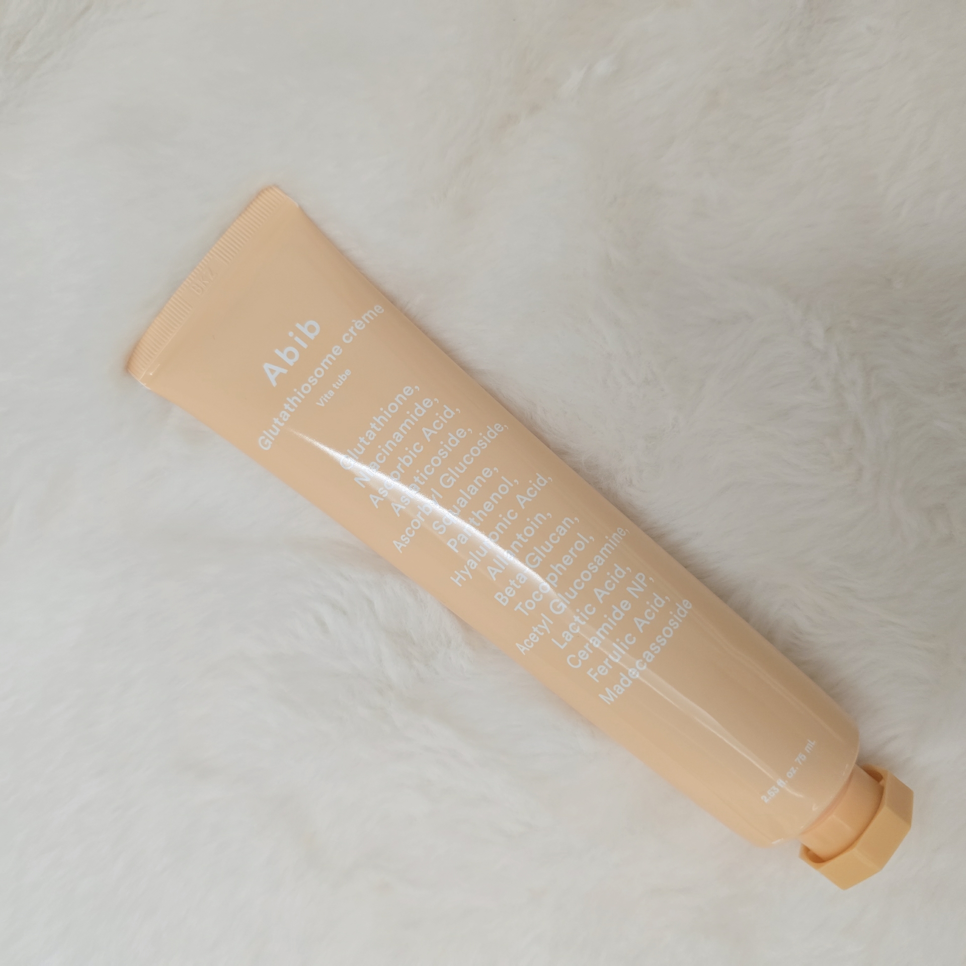 使いやすいチューブタイプで、大好きなAbibからグルタチオンソームのクリームがでました。 しっとりと軽すぎもなく重すぎもない使用感。それでも保湿力はばっちりなので私はAbibのグルタチオンセラムの後に使ってます。 シミやくすみがあると一気に肌が暗くなり老けて見えるので、しっかり予防、ケアしていきたいです。