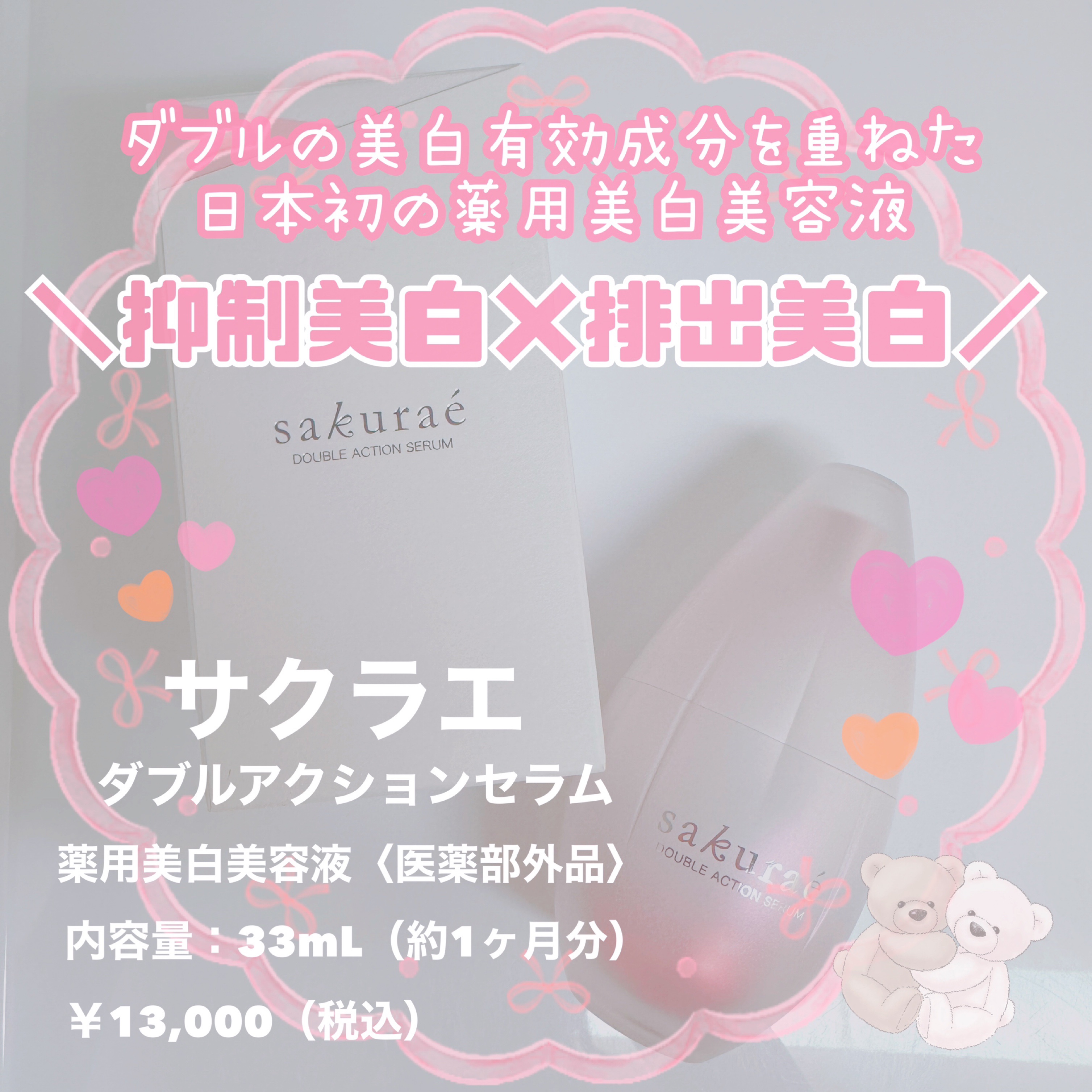 シミのもととなるメラニンの生成「抑制」と「排出」促進、ダブルの美白効能を承認された日本初の薬用美白美容液 メラニン クリアサイクルが生まれ、肌の過剰なメラニンをゼロに近づけ、澄みわたる大人肌へ パケがピンク色でころんとした形でとっても可愛いの🥰 甘くやさしい桜の香りがいい匂いでお気にいり🌸
