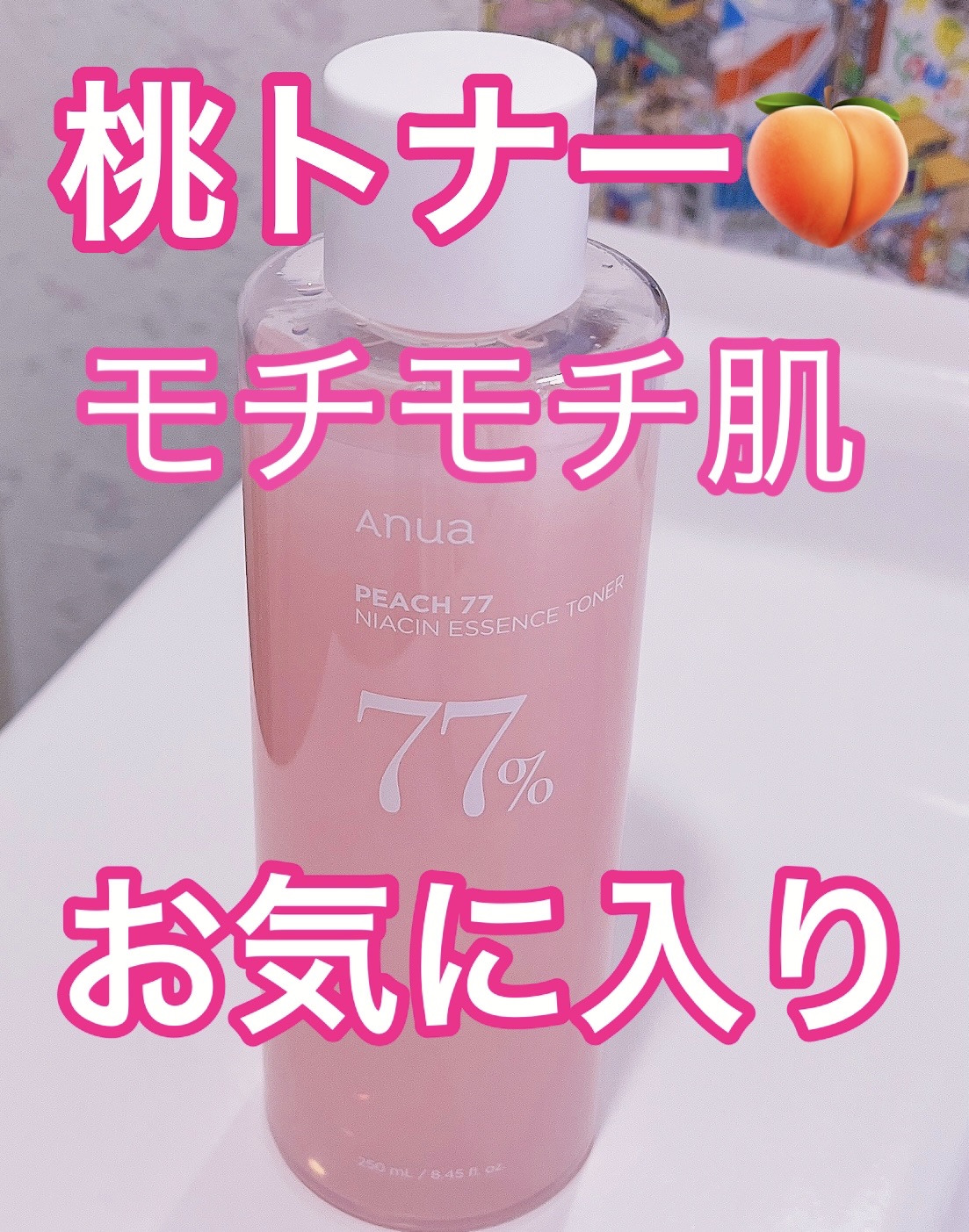 使い心地めちゃ好きな化粧水🧴 Anua 桃77%ナイアシンエッセンストナー 250ml 肌にのせるときちんと留まるけどベタつき感も気にならない絶妙テクスチャ 潤いが閉じ込められてぷるっと弾力とハリが出る✨ 見た目にも潤ってるのが分かるつやんとした肌に