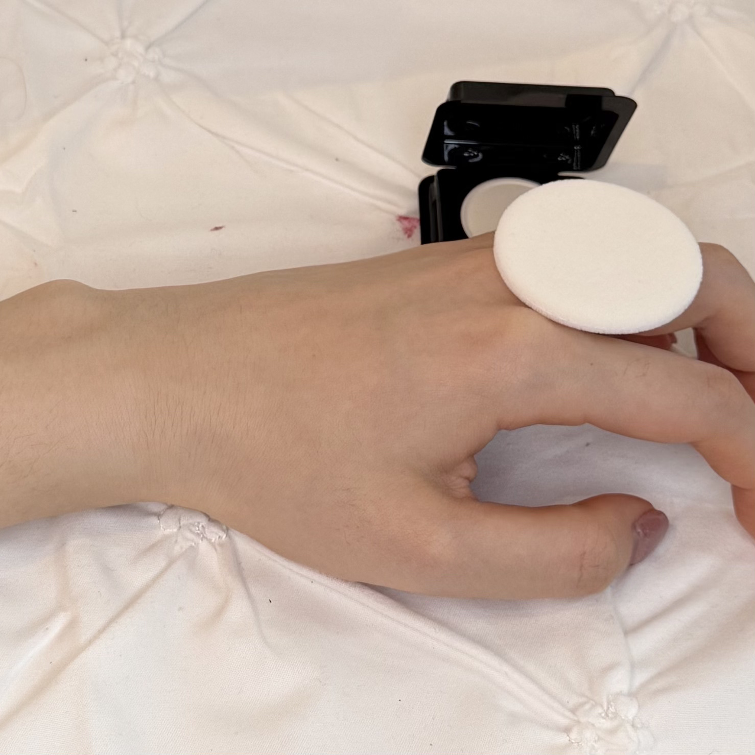 ケイトさんからなんと色付きのクッションファンデが登場🫢 肌をトーンアップさせながら気になる毛穴などをカバーしてくれるアイテムで、トーンアップタイプの化粧下地とファンデーションを合体させた感じ。 なんと!あのリップモンスターの落ちにくい技術を応用してて、肌の水分蒸発に反応してジェル膜を形成!! カラーは全3色展開で、私がゲットしたのはしっかり透明感が出るラベンダーカラー☃️ 肌に塗布してみると本当に自然なトーンアップ効果で白浮きなし。 カバー力は薄くつけると自然なんだけど、重ね付けすると気になる部分はカバーできるよ。 化粧下地とファンデの合体系とは言ったんだけど、個人的に最初に下地を仕込んだ方がきれいな状態がキープできて、肌表面もつるんとするよ🥚 肌なやみやなりたい印象によってカラーを選べるから気になる人はチェックしてみてね🫶