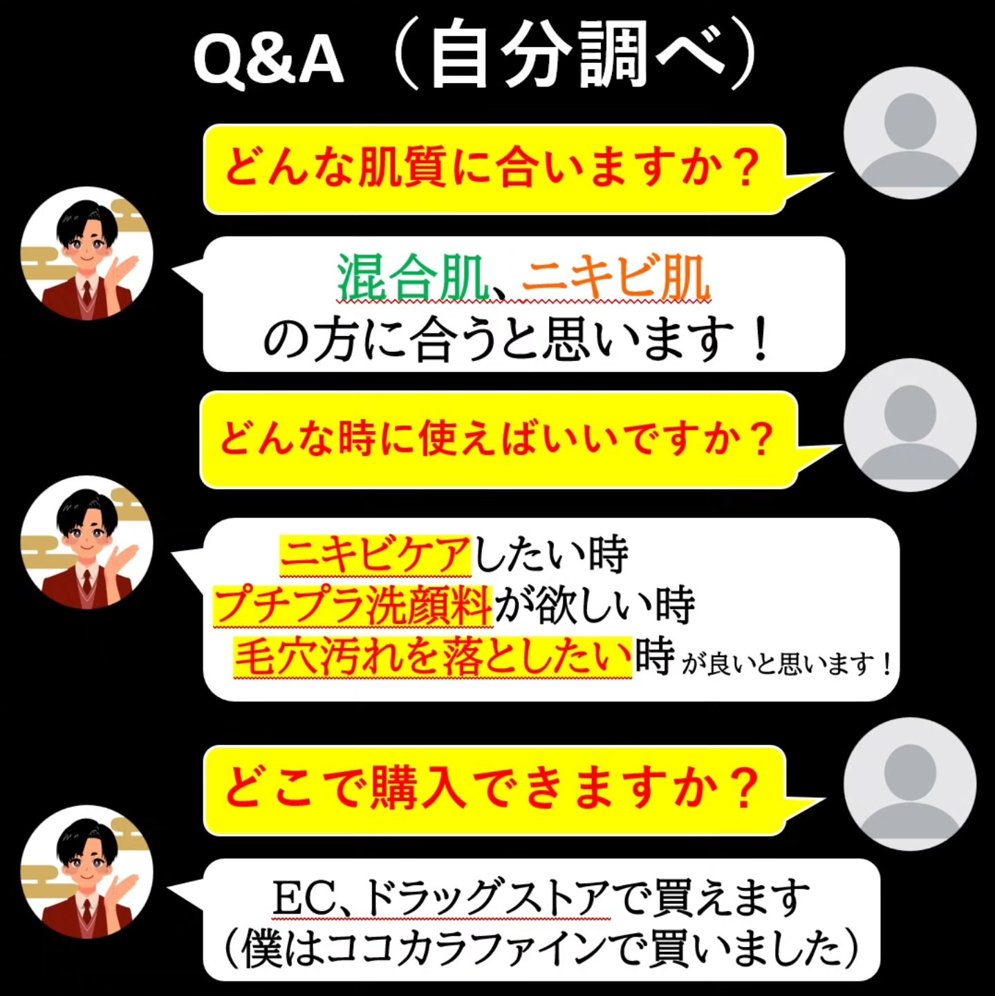 なめらかなテクスチャーで泡立ちがよくふわふわな泡で肌を包みこんでくれます✨ 洗い上がりはさっぱりするけど乾燥肌の私でもつっぱることがないので気に入って毎日使ってます🥹 プチプラで使い心地がよくて毛穴ケア、ニキビ予防もできるのでリピートしようと思ってます🪽