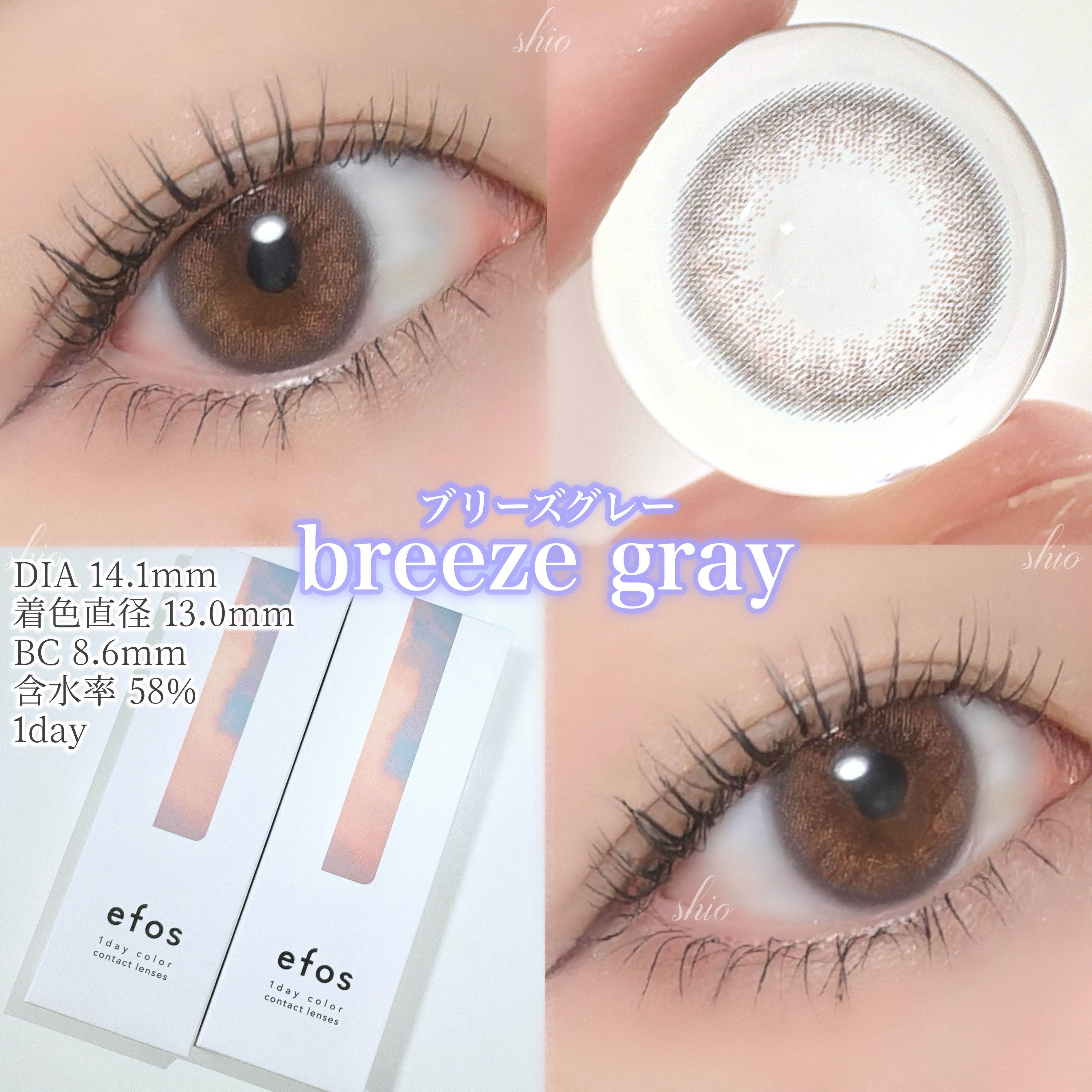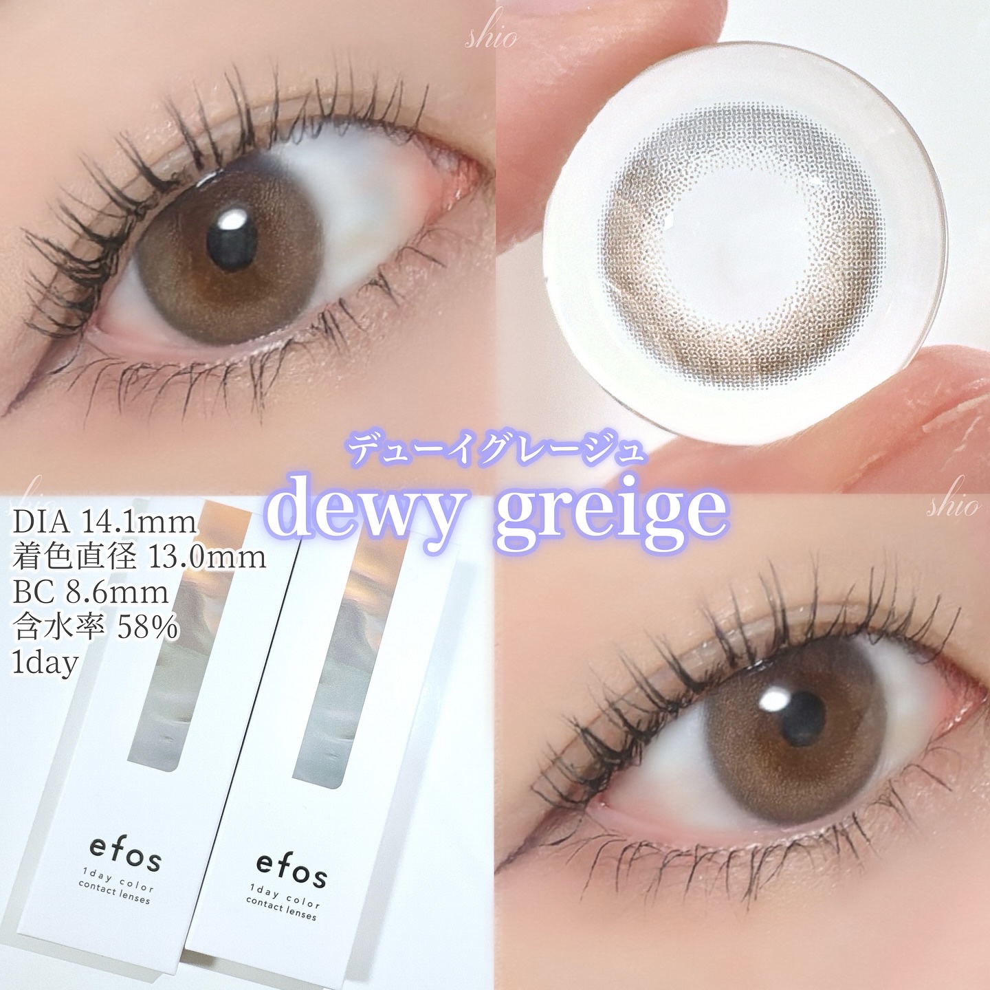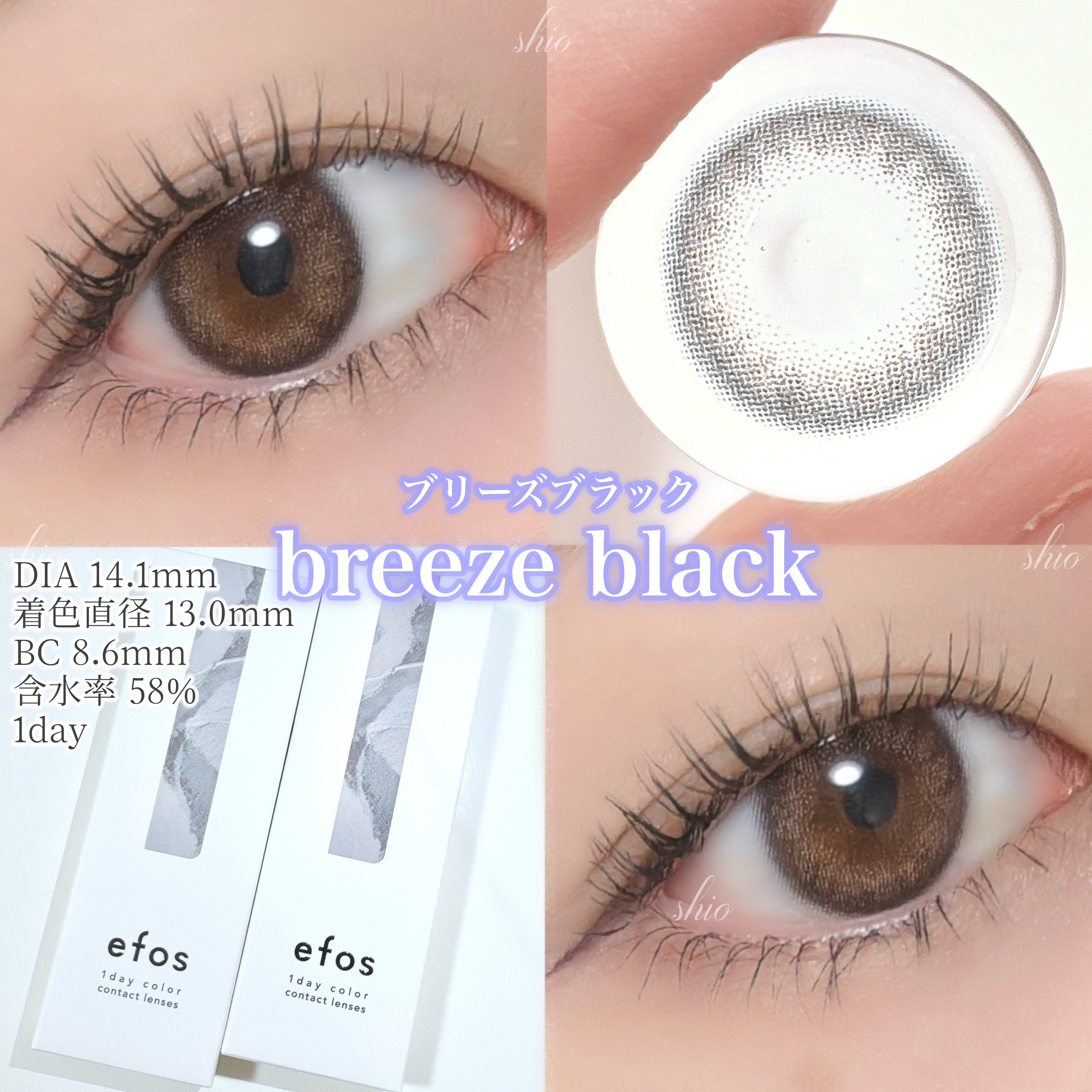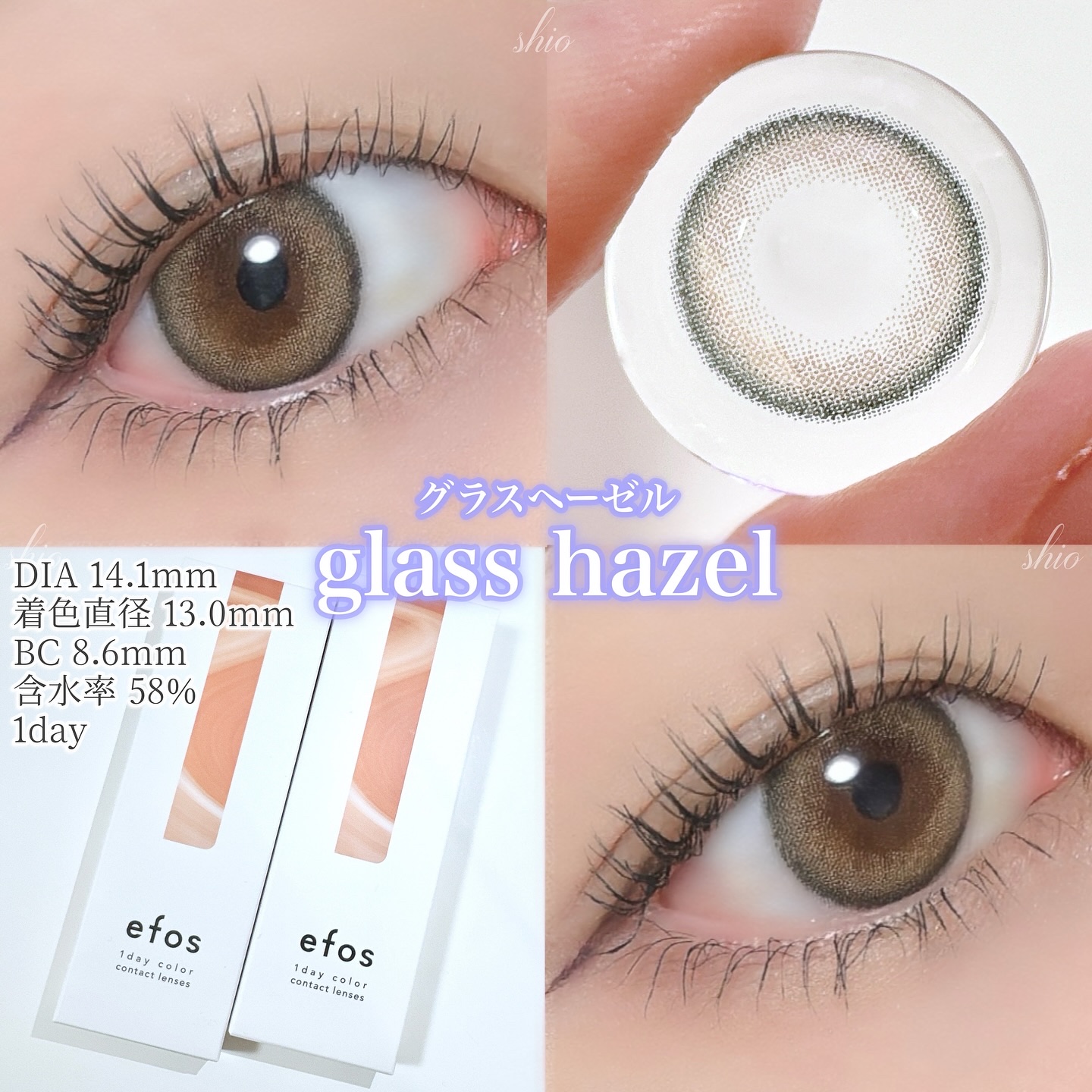 efosのカラコンは着色直径が13.0mmと自然な大きさだから使いやすい! カラーやデザインも瞳に馴染んでナチュラルに変化を与えてくれるようなレンズが多い🖤 大人かわいいナチュラルレンズ💫 efos全8色レビュー🫧✨