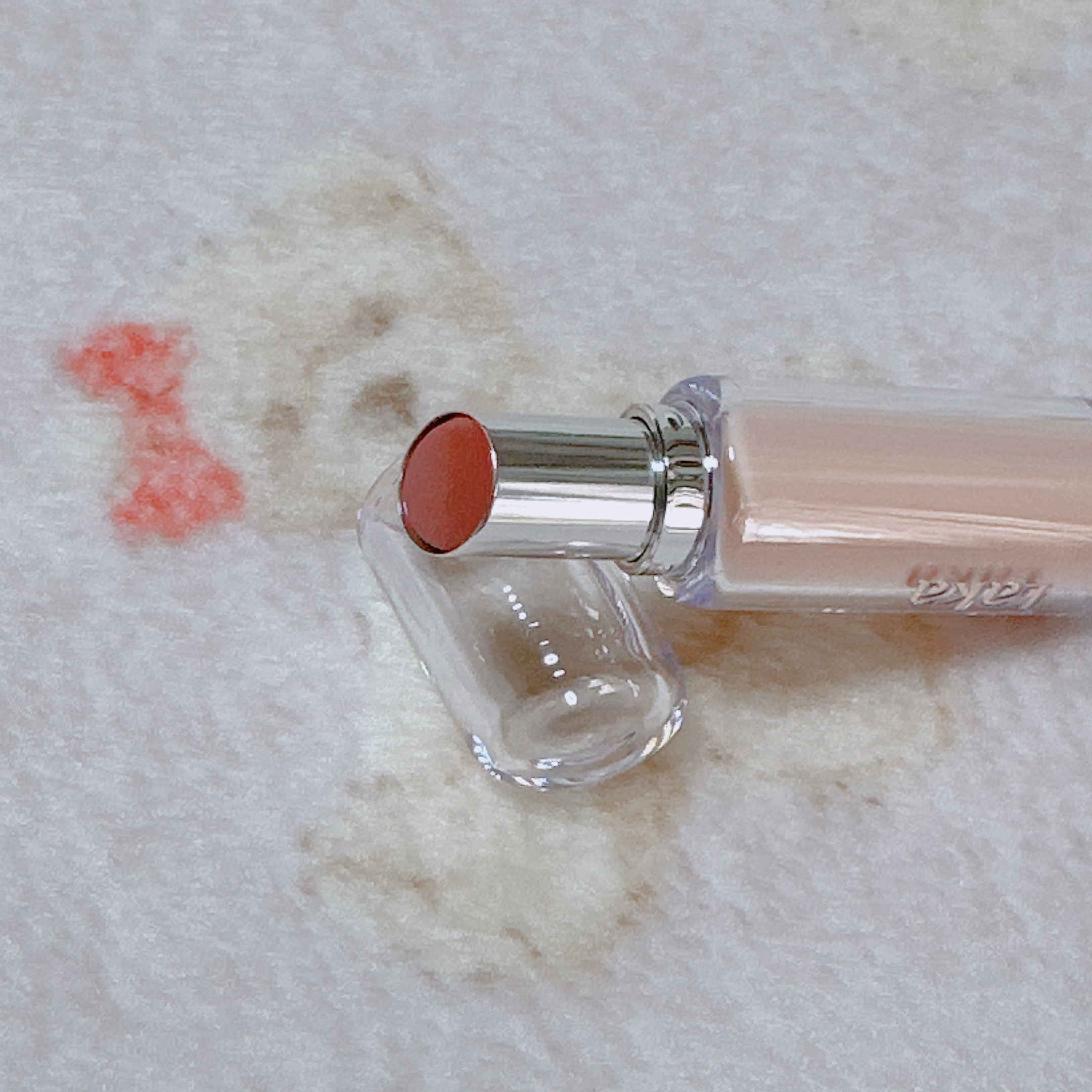 - Point1 透き通った気品が感じられるカラー ユニークなヌードカラーから自然なニュートラルカラー、深くて密度のあるポイントカラーまで、さまざまな好みに合わせた幅広いカラーバリエーション。それぞれのカラーが持つ明度や彩度に合わせて透明感を細かく調整しているため、グラデーションリップやオーバリップなど、プロが施したようなさまざまなリップメイクが楽しめます。また、夕方の暗い空間や、室内の光の下でも、唇本来の色にリップスティックのカラーが馴染み、水彩画のようなナチュラルな発色で、自然な血色感のある唇に演出します。 Point2 光に包まれたガラス玉のようなきらめき Lakaならではの「ボンディンググロウ」フォーミュラで、唇に触れた瞬間、体温でやさしく溶けていくようなテクスチャー。しっとりと馴染んで密着しながら唇をコーティングしてくれます。高い屈折率で光を強く反射させるハイシャインオイルコンプレックスを配合し、光沢感のある生き生きとしたリップカラーを実現しました。