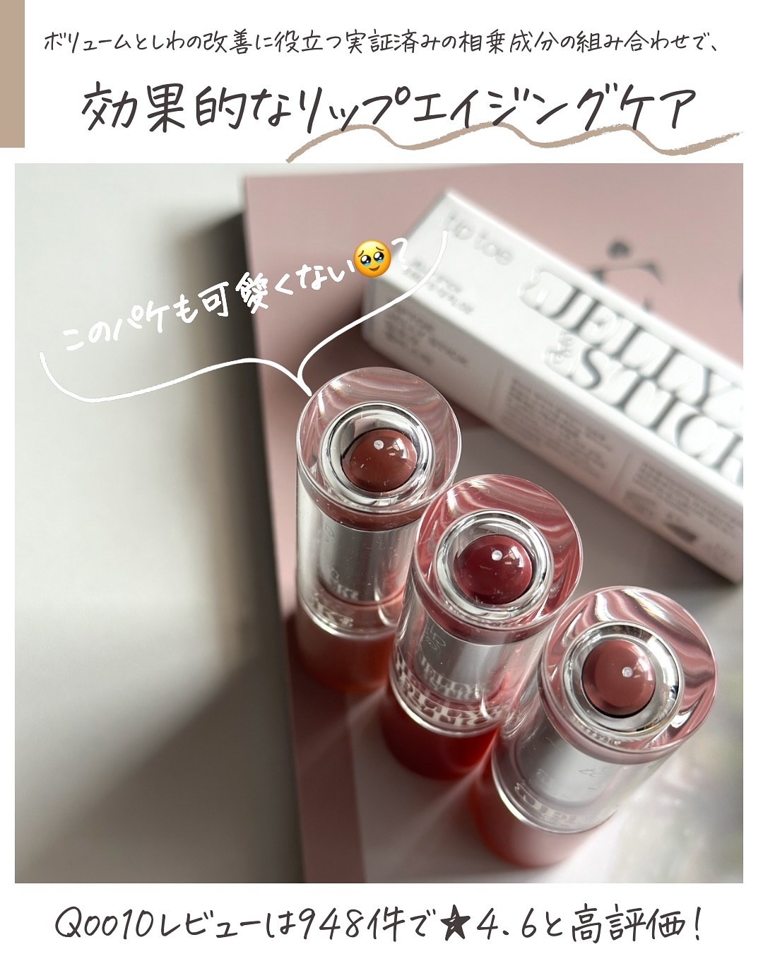 - <001 トゥシューズ> ビス-ベヘニル/アイソステアリル/フィトステリルダイマーダイリノレイルダイマーダイリノレエイト、ポリアイソブテン、ダイアイソステアリルマレート、ホホバ種子油、合成ワックス、¥ダイフェニルジメチコン、ポリグリセリル-2トライアイソステアレート、トライデシルトライメリテート、ダイペンタエリスリチルヘキサヒドロキシステアレート/ヘクサステアレート/ヘクサロジネート、水添ポリアイソブテン、トコフェリルアセテート、二酸化チタン、カプリリック/カプリックトリグリセリド、カンデリラワックス、ソルビタンセスキオレイエート、ヒマワリ種子ワックス、地母根エキス、マイクロクリスタリンワックス、ステアラルコニウムヘクトライト、ポリヒドロキシステアリン酸、レシチン、アイソステアリン酸、アイソプロピルミリステート エチルヘキシルパルミテート、二酸化チタン/二酸化チタン、エチレン/プロピレンコポリマー プロピレンカーボネート、ポリグリセリル-3ポリリシノレエート、ダイメチコン、トコフェロール、精製水、ブチレングリコール、グリセリン、1,2-ヘキサンジオール、カプリリルグリコール ノナペプチド-1、アセチルヘキサペプチド-8、カッパトライペプチド-1、トライペプチド-1、パルミトイルテトラペプチド-7、パルミトイルトライペプチド-1、パルミトイルペンタペプチド-4、ヘクサペプチド-9、デヒドロ酢酸、黄色4号、赤色201号、赤色酸化鉄、赤色202号、赤色218号 <002 モラン(牡丹)> ビス-ベヘニル/アイソステアリル/フィトステリルダイマーダイリノレイルダイマーダイリノレエイト、ポリアイソブテン、ダイアイソステアリルマレート、ホホバ種子油、合成ワックス、ダイフェニルジメチコン、ポリグリセリル-2トライアイソステアレート、トライデシルトライメリテート、ダイペンタエリスリチルヘキサヒドロキシステアレート/ヘクサステアレート/ヘクサロジネート、水添ポリアイソブテン、トコフェリルアセテート、カプリリック/カプリックトリグリセリド、カンデリラワックス、二酸化チタン、ソルビタンセスキオレイエート、ヒマワリ種子ワックス、ウコン根エキス、地母根エキス、マイクロクリスタリンワックス、ステアラルコニウムヘクトライト、ポリヒドロキシステアリン酸、レシチン、アイソステアリン酸、アイソプロピルミリステート、エチルヘキシルパルミテート、エチレン/プロピレンコポリマー、プロピレンカーボネート、二酸化チタン/二酸化チタン、ポリグリセリル-3ポリリシノレエート、ダイメチコン、アラビアゴム、マルトデキストリン、トコフェロール、精製水、ブチレングリコール、グリセリン、1,2-ヘキサンジオール、カプリリルグリコール、ノナペプチド-1、アセチルヘキサペプチド-8、カッパトライペプチド-1、トライペプチド-1、パルミトイルテトラペプチド-7、パルミトイルトライペプチド-1、パルミトイルペンタペプチド-4、ヘクサペプチド-9、デヒドロ酢酸、赤色酸化鉄、黄色4号、赤色202号、等色201号 <003 ストロベリー> ビス-ベヘニル/アイソステアリル/フィトステリルダイマーダイリノレイルダイマーダイリノレエイト、ポリアイソブテン、ダイアイソステアリルマレート、ホホバ種子油、ポリグリセリル-2トライアイソステアレート、合成ワックス、ダイフェニルジメチコン、トライデシルトライメリテート、ダイペンタエリスリチルヘキサヒドロキシステアレート/ヘクサステアレート/ヘクサロジネート、水添ポリアイソブテン、トコフェリルアセテート、カプリリック/カプリックトリグリセリド、カンデリラワックス、黄色4号、ソルビタンセスキオレイエート、ヒマワリ種子ワックス、ウコン根エキス、地母根エキス、マイクロクリスタリンワックス、ステアラルコニウムヘクトライト、ポリヒドロキシステアリン酸、レシチン、アイソステアリン酸、アイソプロピルミリステート、エチルヘキシルパルミテート、エチレン/プロピレンコポリマー、プロピレンカーボネート、ポリグリセリル-3ポリリシノレエート、ダイメチコン、アラビアゴム、マルトデキストリン、トコフェロール、精製水、ブチレングリコール、グリセリン、1,2-ヘキサンジオール、カプリリルグリコール、ノナペプチド-1、アセチルヘキサペプチド-8、カッパトライペプチド-1、トライペプチド-1、パルミトイルテトラペプチド-7、パルミトイルトライペプチド-1、パルミトイルペンタペプチド-4、ヘクサペプチド-9、デヒドロ酢酸、赤色104号、赤色202号、等色201号 <004 プラムシロップ> ビス-ベヘニル/アイソステアリル/フィトステリルダイマーダイリノレイルダイマーダイリノレエイト、ポリアイソブテン、ダイアイソステアリルマレート、ホホバ種子油、合成ワックス、ダイフェニルジメチコン、ポリグリセリル-2トライアイソステアレート、トライデシルトライメリテート、ダイペンタエリスリチルヘキサヒドロキシステアレート/ヘクサステ
