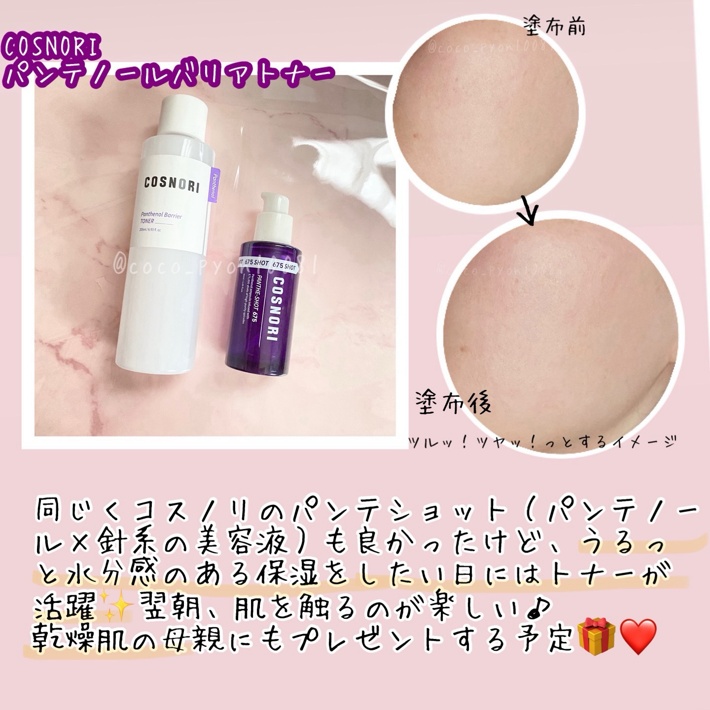 #COSNORI#パンテショット675#パンテノールバリアトナーモニターに当選し頂きました💜肌バリア改善やハリツヤが期待できる針美容液とトナーのセット👯♀️♡どちらも軽い付け心地で使いやすい👏🏻詳しい使用感は写真へ☑️#PR#パンテハリ#コ...