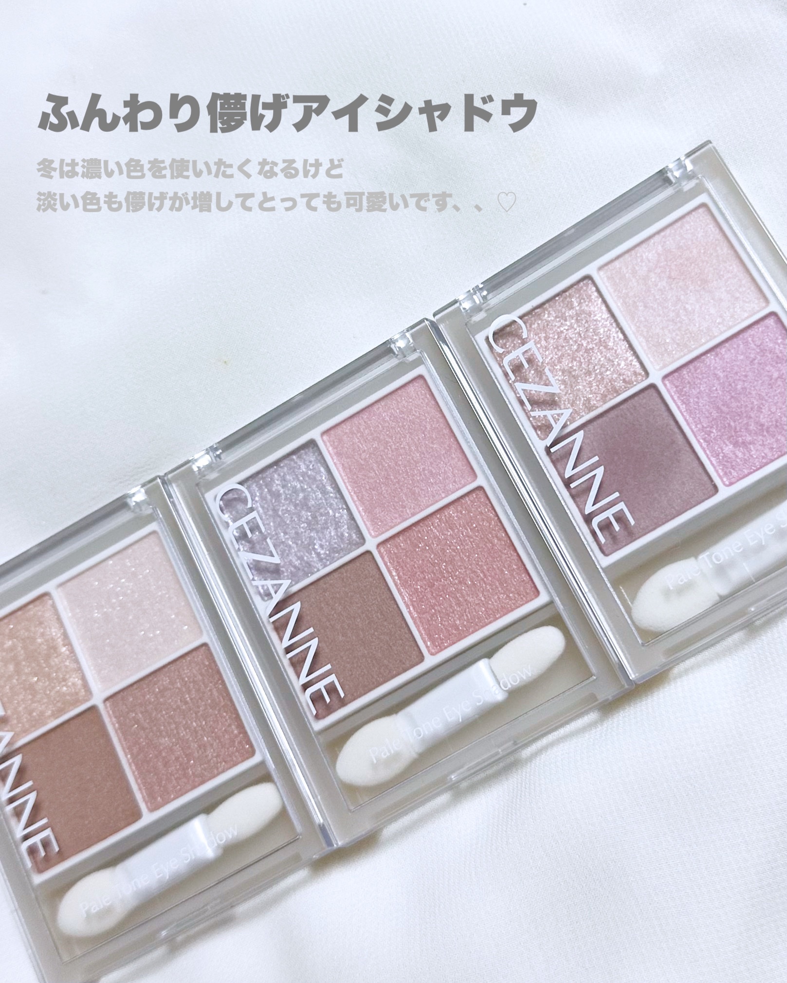 CEZANNE ペールトーンアイシャドウ02シェリーピンク 03ムーンアメジストどちらも淡色ニュアンスですが、とても、綺麗色で、密着もOKです👌🩷🩷🩷迷った末に2パレット購入しました❗❗ラメも綺麗です❣️❣️👌#CEZANNEペールトーンアイ...