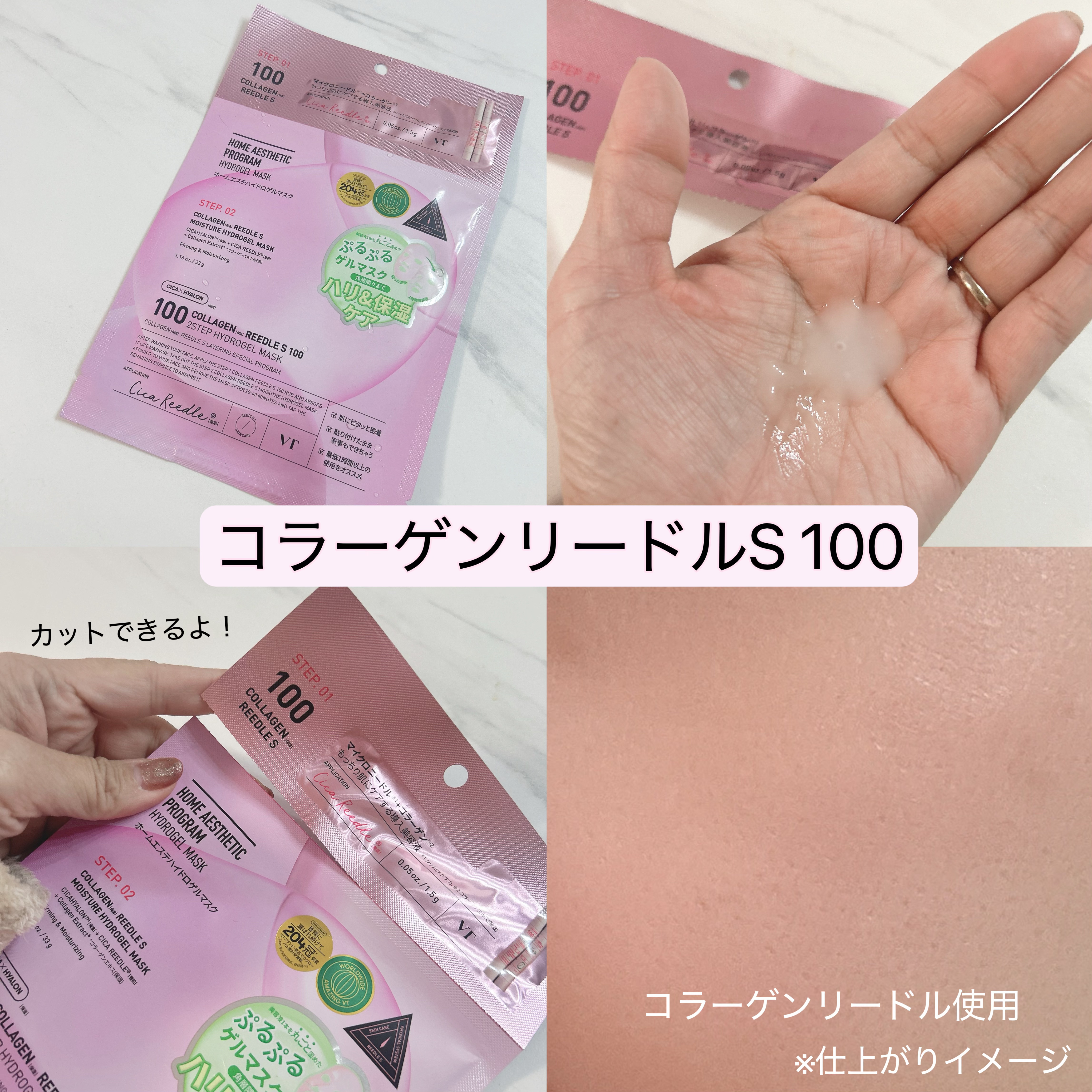 アインズ&トルペ限定アイテム!VTコラーゲンリードルS1002ステップハイドロゲルマスクプロCICAリードルS1002ステップハイドロゲルマスク肌悩み*1に合わせて選べるカラーリードルSが肌角質層へ浸透美容成分が角層まで浸透し徐々に透明に変化...