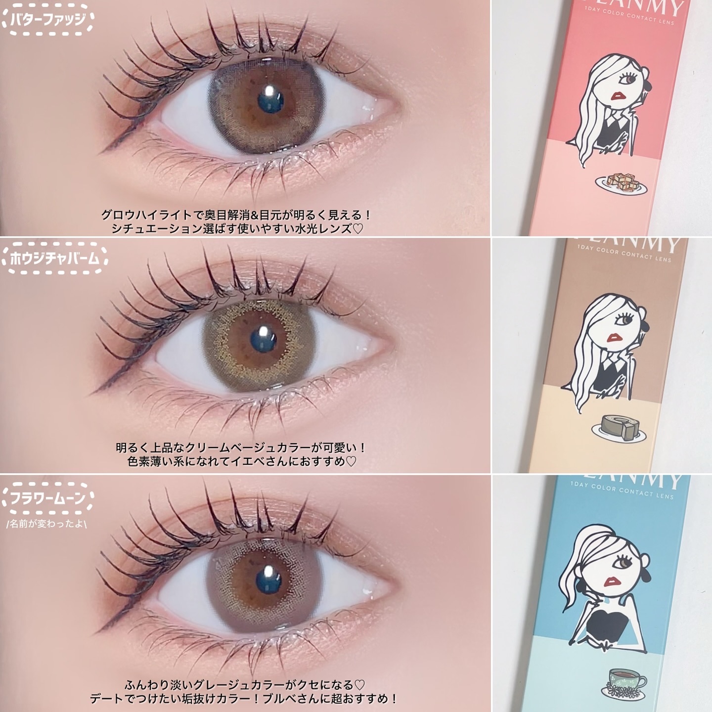 大人可愛いパッケージにリニューアル❤︎ 🥨#バターファッジ こちらは新色!贅沢ハイライトを採用した瞳に光と立体感を演出してくれるデザイン✨ 🥞#きなこロール ふんわりしたきなこブラウンで優しげな瞳に。ナチュラルなデザインでどんなシーンにも使いやすい! FLANMYはナチュラルなデザインから盛れるデザインまであるから好きなのがきっと見つかるはず!