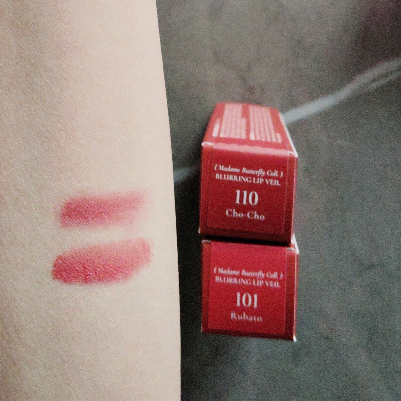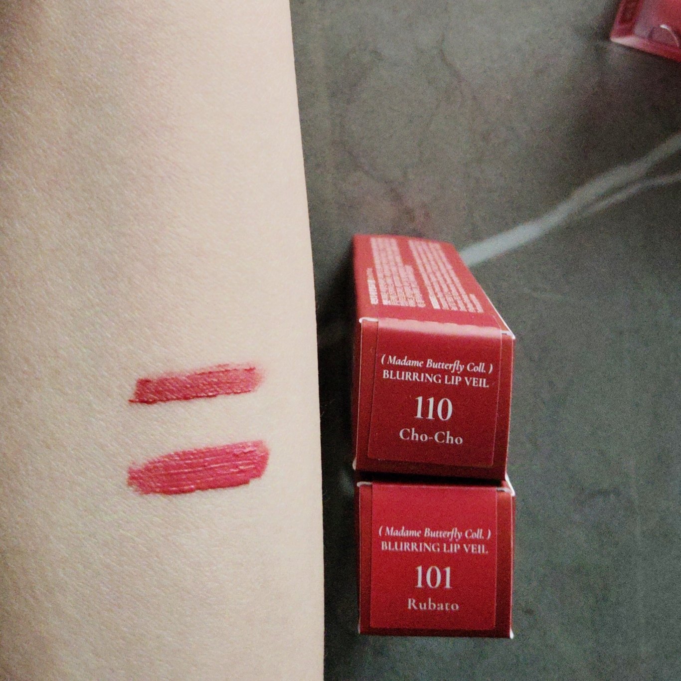 この「マダムバタフライ」コレクションは、小説とオペラにインスパイアを受けたコレクションで、中間の雰囲気のあるカラー感でソフトマットに演出するブラーニングリップティントです。 ふんわりしたソフトマットな仕上がりが可愛くて、カラバリも使いやすいものばかりです。 106は王道のキュートなピンクで、でも肌馴染みが良いから使いやすいです。