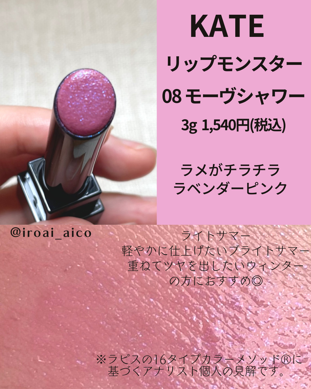 @iroai_aico#ブルベ夏#サマーの方におすすめのツヤ系#リップモンスターです!リップモンスター¥1,540クリアトーン¥1,320ツヤバース¥1,650※おすすめコスメはラピスの16タイプカラーメソッド®に基づくアナリスト個人の見解で...