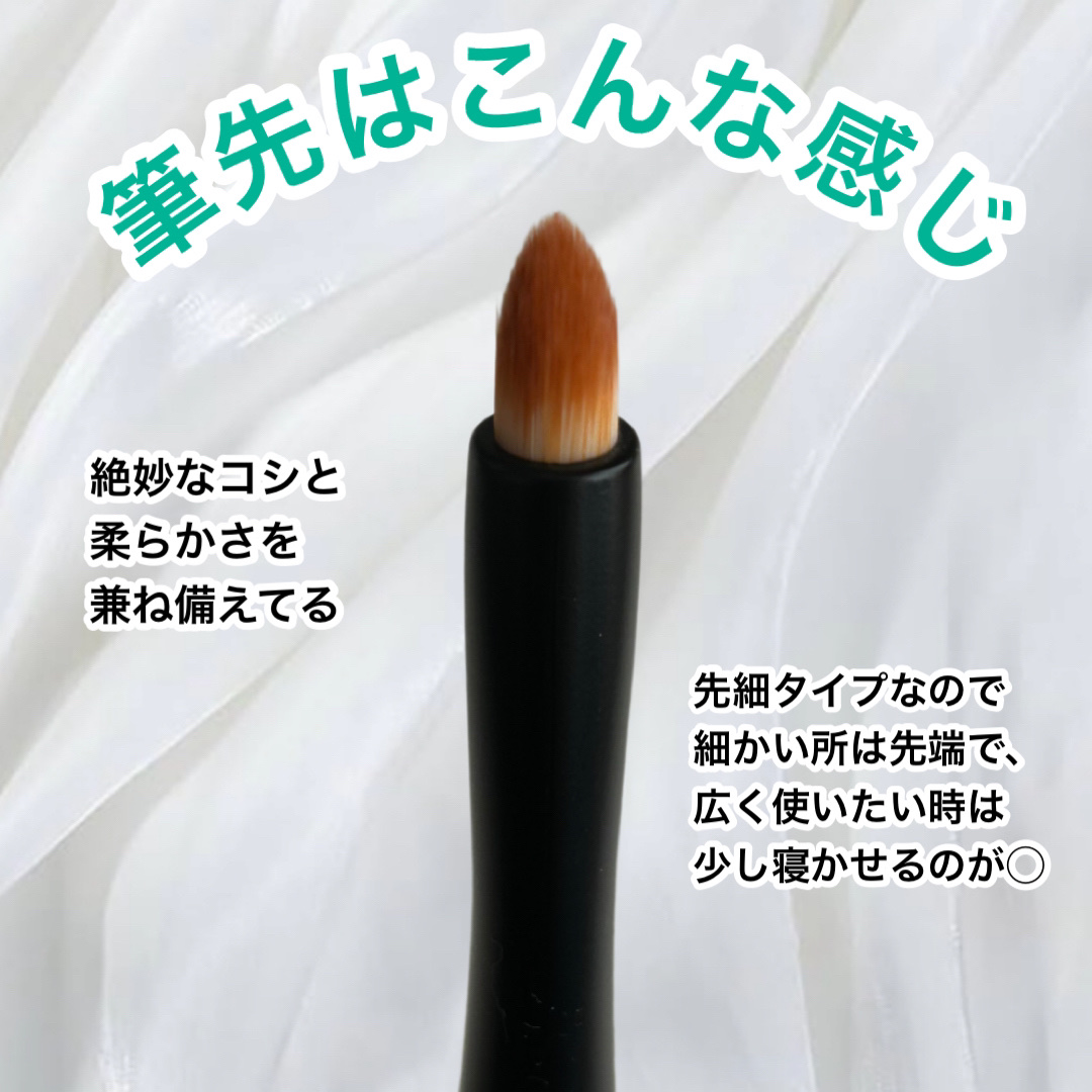 - 先細やわらかピンポイントで描きやすい筆先の仕様。 アイシャドウ・涙袋・リップなどキワや細かい部分にフィットするブラシ。 人間工学に基づいて設計した柄は安定感があり持ちやすくメイクがしやすい!