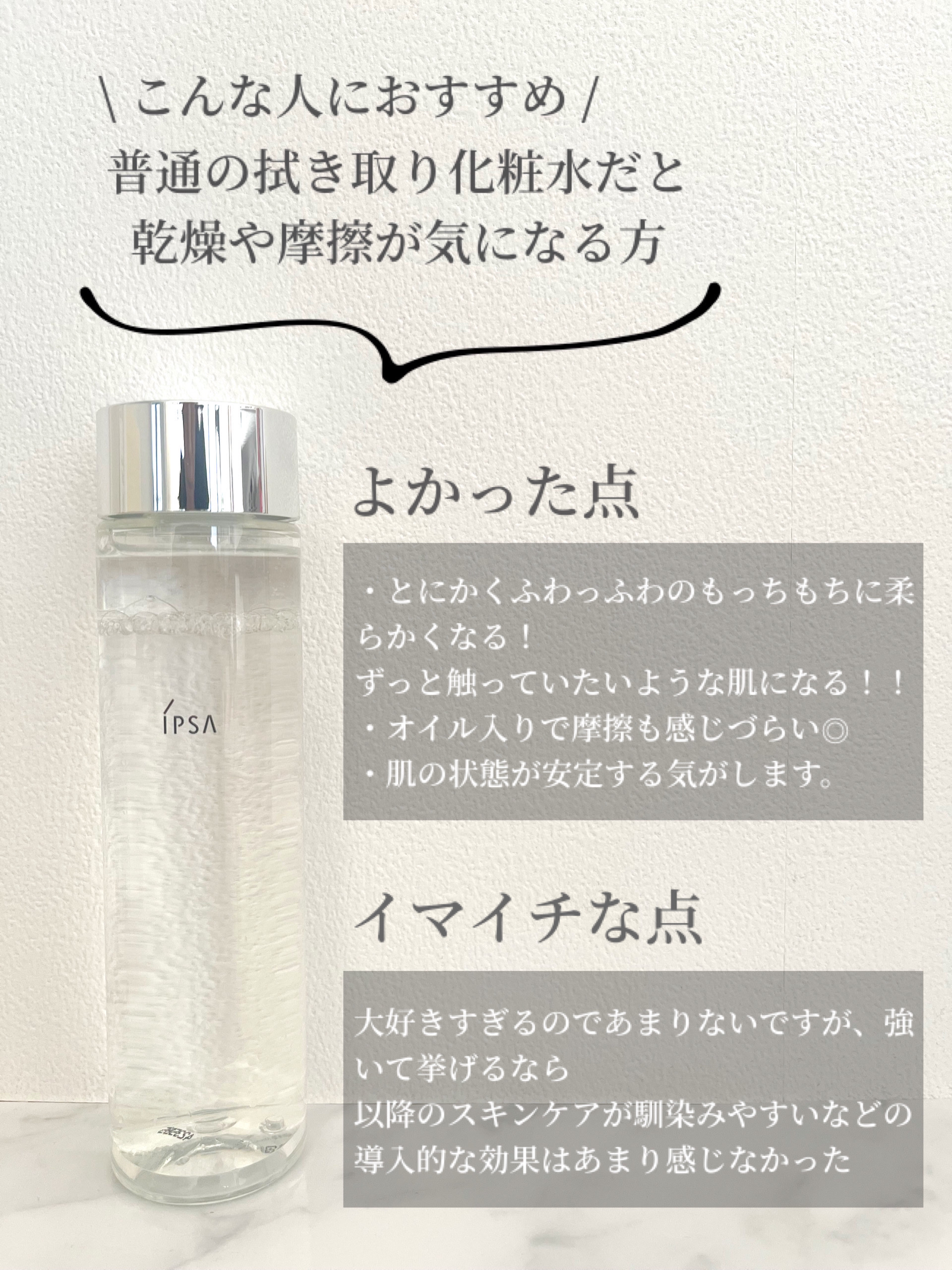 IPSA▹▸クリアアップローション1なぜか時々恋しくなるイプサ🥺こちらの拭き取り化粧水は夏場によく使っています。1は脂性肌などベタつきが気になる方向けです。とろみのある化粧水の中に『皮脂溶解ソフトマイクロボール』が入っています。コットンで拭き...