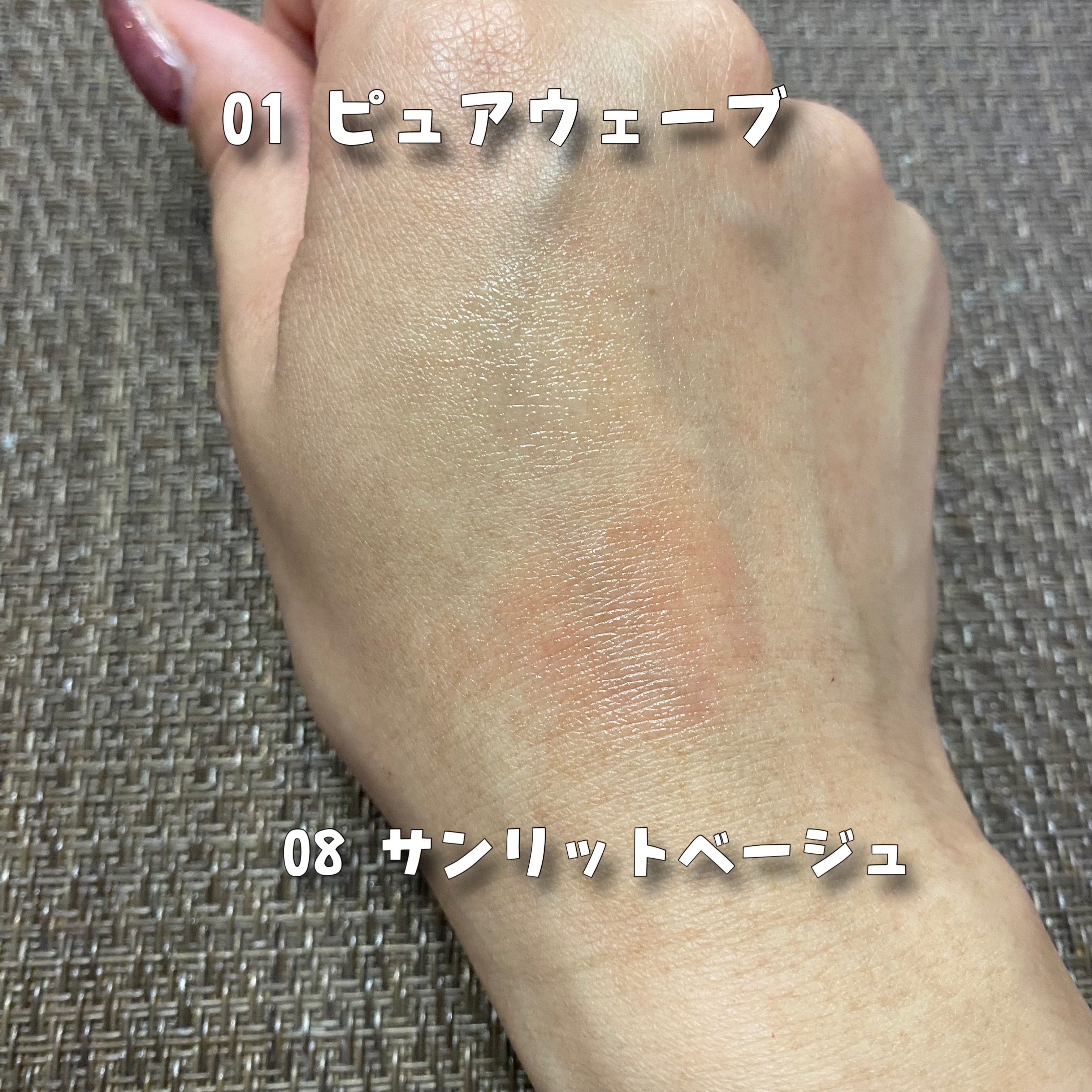 - <11 ピュアウェーブ > リンゴ酸ジイソステアリル、ビスジグリセリルポリアシルアジペート-2、ポリイソブテン、オクチルドデカノール、ダイマージリノール酸(フィトステリル/イソステアリル/セチル/ステアリル/ベヘニル)、セレシン、マイクロクリスタリンワックス、合成ワックス、ヘキサ(ヒドロキシステアリン酸/ステアリン酸/ロジン酸)ジペンタエリスリチル、(VP/ヘキサデセン)コポリマー、キャンデリラロウ、1,2-ヘキサンジオール、セスキオレイン酸ソルビタン、メントール、乳酸メンチル、バニリルブチル、水、エチルヘキシルグリセリン、シア脂、ツバキ種子油、カニナバラ種子エキス、酢酸トコフェロール、水添ポリイソブテン、BG、ヒアルロン酸Na、BHT、ソケイ花エキス、マドンナリリー花エキス、バラエキス、チャ葉エキス、フリージアエキス、ハナショウブエキス、エーデルワイスエキス、ハス花エキス、ハナスゲ根エキス、トコフェロール、黄4、赤104(1) <12 モーヴビーチ> リンゴ酸ジイソステアリル、ビスジグリセリルポリアシルアジペート-2、ダイマージリノール酸(フィトステリル/イソステアリル/セチル/ステアリル/ベヘニル)、ヘキサ(ヒドロキシステアリン酸/ステアリン酸/ロジン酸)ジペンタエリスリチル、オクチルドデカノール、マイクロクリスタリンワックス、セレシン、ポリイソブテン、合成ワックス、(VP/ヘキサデセン)コポリマー、キャンデリラロウ、1,2-ヘキサンジオール、セスキオレイン酸ソルビタン、メントール、乳酸メンチル、バニリルブチル、水、エチルヘキシルグリセリン、シア脂、ツバキ種子油、カニナバラ種子エキス、酢酸トコフェロール、水添ポリイソブテン、BG、ヒアルロン酸Na、BHT、ソケイ花エキス、マドンナリリー花エキス、バラエキス、チャ葉エキス、フリージアエキス、ハナショウブエキス、エーデルワイスエキス、ハス花エキス、ハナスゲ根エキス、トコフェロール、酸化チタン、赤202、酸化鉄、赤104(1) <13 ピーチクラッシュ> リンゴ酸ジイソステアリル、ビスジグリセリルポリアシルアジペート-2、オクチルドデカノール、ダイマージリノール酸(フィトステリル/イソステアリル/セチル/ステアリル/ベヘニル)、ポリイソブテン、セレシン、マイクロクリスタリンワックス、ヘキサ(ヒドロキシステアリン酸/ステアリン酸/ロジン酸)ジペンタエリスリチル、合成ワックス、(VP/ヘキサデセン)コポリマー、キャンデリラロウ、1,2-ヘキサンジオール、セスキオレイン酸ソルビタン、メントール、乳酸メンチル、バニリルブチル、水、エチルヘキシルグリセリン、シア脂、ツバキ種子油、カニナバラ種子エキス、酢酸トコフェロール、水添ポリイソブテン、BG、ヒアルロン酸Na、BHT、チャ葉エキス、フリージアエキス、ハナショウブエキス、ソケイ花エキス、エーデルワイスエキス、マドンナリリー花エキス、ハス花エキス、バラエキス、ハナスゲ根エキス、トコフェロール、赤104(1)、黄4、酸化チタン、黄5、赤202 <14 ベリーフィズ > リンゴ酸ジイソステアリル、ビスジグリセリルポリアシルアジペート-2、オクチルドデカノール、ダイマージリノール酸(フィトステリル/イソステアリル/セチル/ステアリル/ベヘニル)、ポリイソブテン、セレシン、マイクロクリスタリンワックス、ヘキサ(ヒドロキシステアリン酸/ステアリン酸/ロジン酸)ジペンタエリスリチル、合成ワックス、(VP/ヘキサデセン)コポリマー、キャンデリラロウ、1,2-ヘキサンジオール、セスキオレイン酸ソルビタン、メントール、乳酸メンチル、バニリルブチル、水、エチルヘキシルグリセリン、シア脂、ツバキ種子油、カニナバラ種子エキス、酢酸トコフェロール、水添ポリイソブテン、BG、ヒアルロン酸Na、BHT、チャ葉エキス、フリージアエキス、ハナショウブエキス、ソケイ花エキス、エーデルワイスエキス、マドンナリリー花エキス、ハス花エキス、バラエキス、ハナスゲ根エキス、トコフェロール、赤104(1)、酸化チタン、黄5、赤201、赤202 <15 モーニングバーガンディ> リンゴ酸ジイソステアリル、ビスジグリセリルポリアシルアジペート-2、ダイマージリノール酸(フィトステリル/イソステアリル/セチル/ステアリル/ベヘニル)、ヘキサ(ヒドロキシステアリン酸/ステアリン酸/ロジン酸)ジペンタエリスリチル、オクチルドデカノール、マイクロクリスタリンワックス、ポリイソブテン、セレシン、合成ワックス、(VP/ヘキサデセン)コポリマー、キャンデリラロウ、1,2-ヘキサンジオール、セスキオレイン酸ソルビタン、メントール、バニリルブチル、乳酸メンチル、水、エチルヘキシルグリセリン、酢酸トコフェロール、カニナバラ種子エキス、ツバキ種子油、シア脂、水添ポリイソブテン、BG、ヒアルロン酸Na、BHT、バラエキス、ハス花エキス、マドンナリリー花エキス、エーデルワイスエキス、ソケイ花エキス、ハナショウブエキス、フリージアエキス、チャ葉エキス、ハナスゲ根エキス、トコフェロール、赤202、黄5、酸化